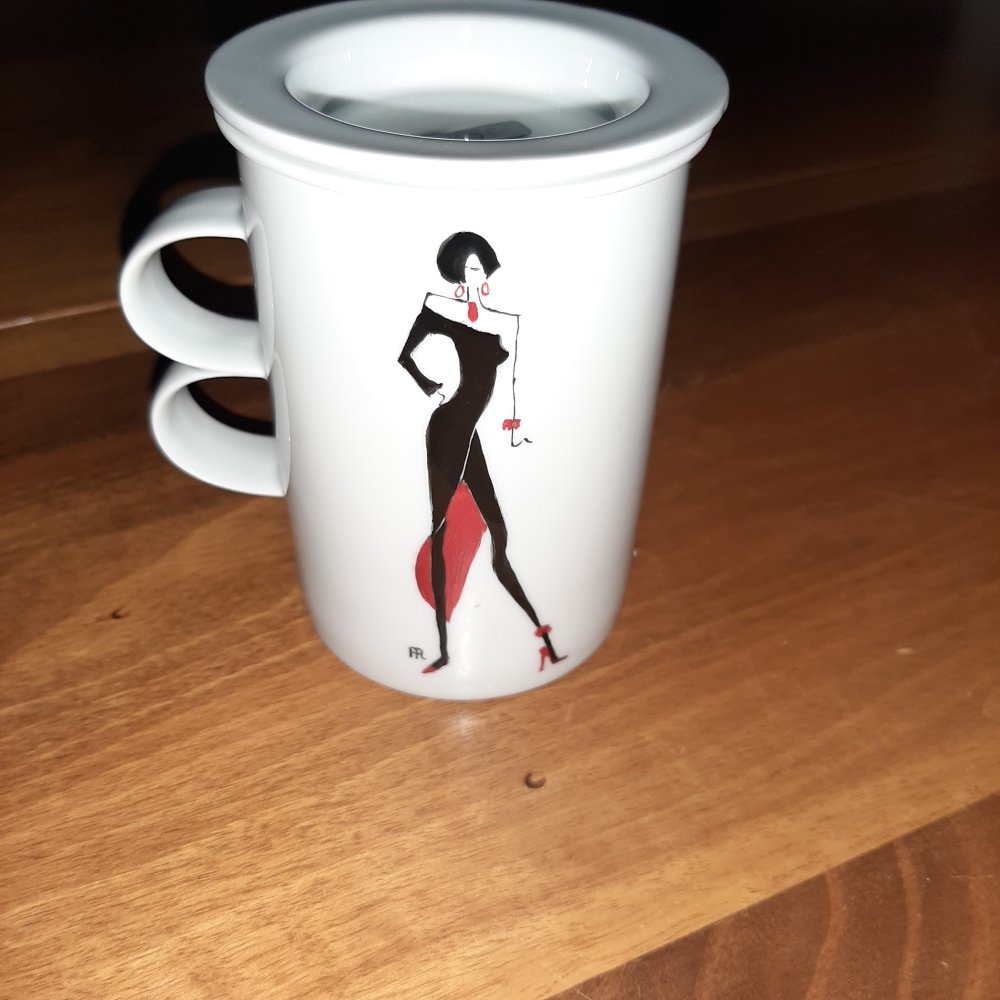 tisaniere en porcelaine peint à la main , 3 cuissons au four céramique à 800° decor mannequin