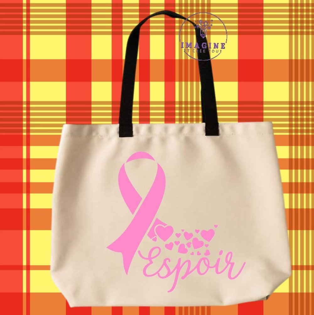 Tote bag taille L - sublimation - femme - octobre rose - papillons - prévention - dépistage - espoir - hope - nœud rose
