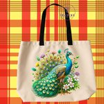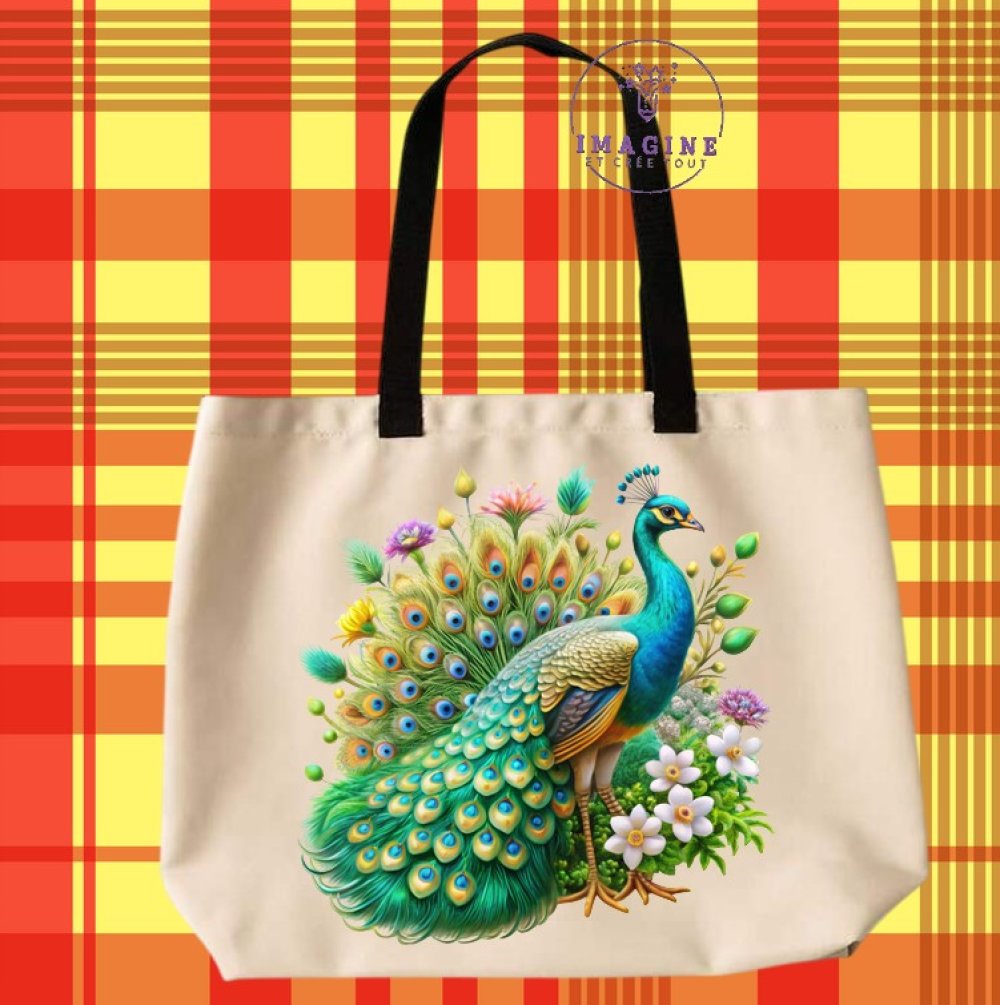 Tote bag taille L - sublimation - impression infusible ink - beautiful colorful peacock - fleurs - paon - multicolores