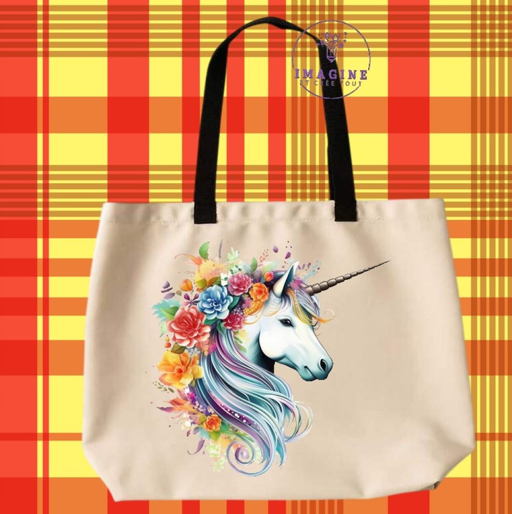 Tote bag taille L - sublimation - impression infusible ink - rainbow - arc en ciel - unicorn - féerique - corne - magique