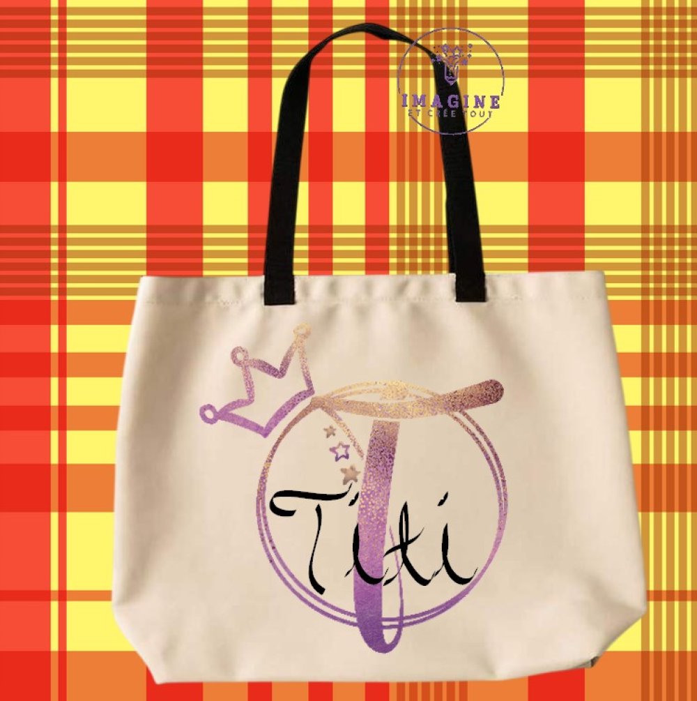 Tote bag taille L - sublimation - impression infusible ink - initiale T - prénom - couronne ( prénom à préciser )