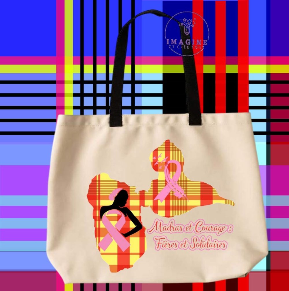 Tote bag taille L - sublimation - octobre rose - guadeloupe - madras - prévention - espoir - nœud - hope - femme