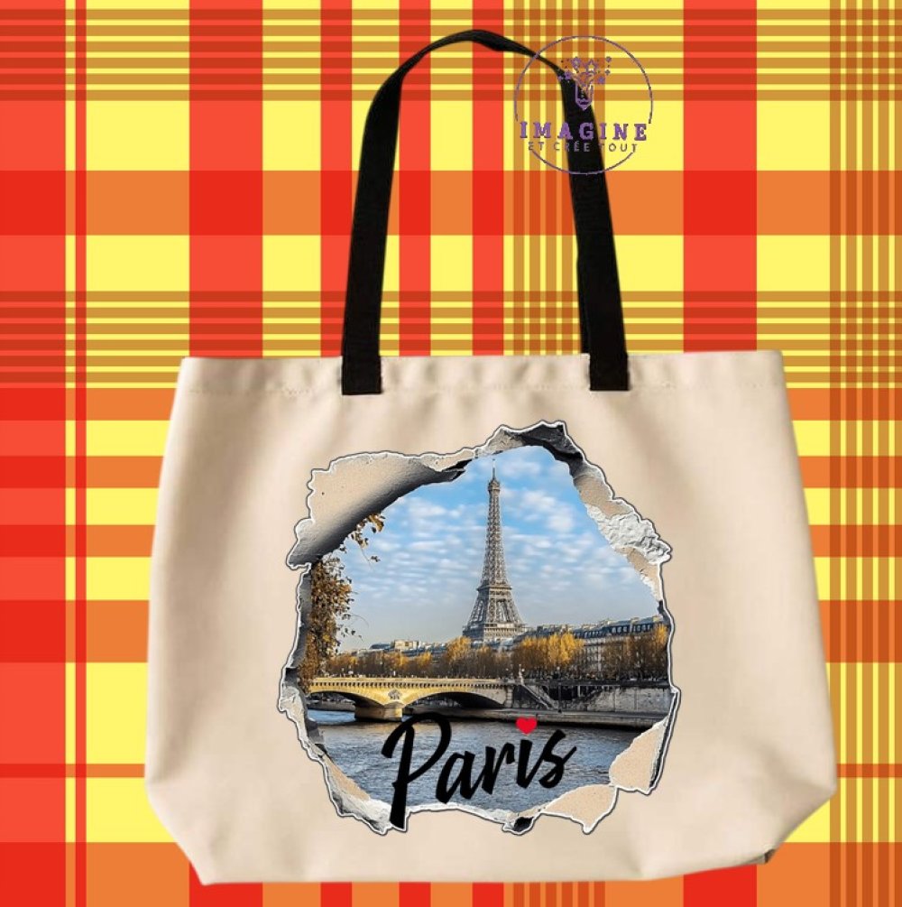 Tote bag taille L - sublimation - paris - tour eiffel - france - capitale - mur cassé - la seine