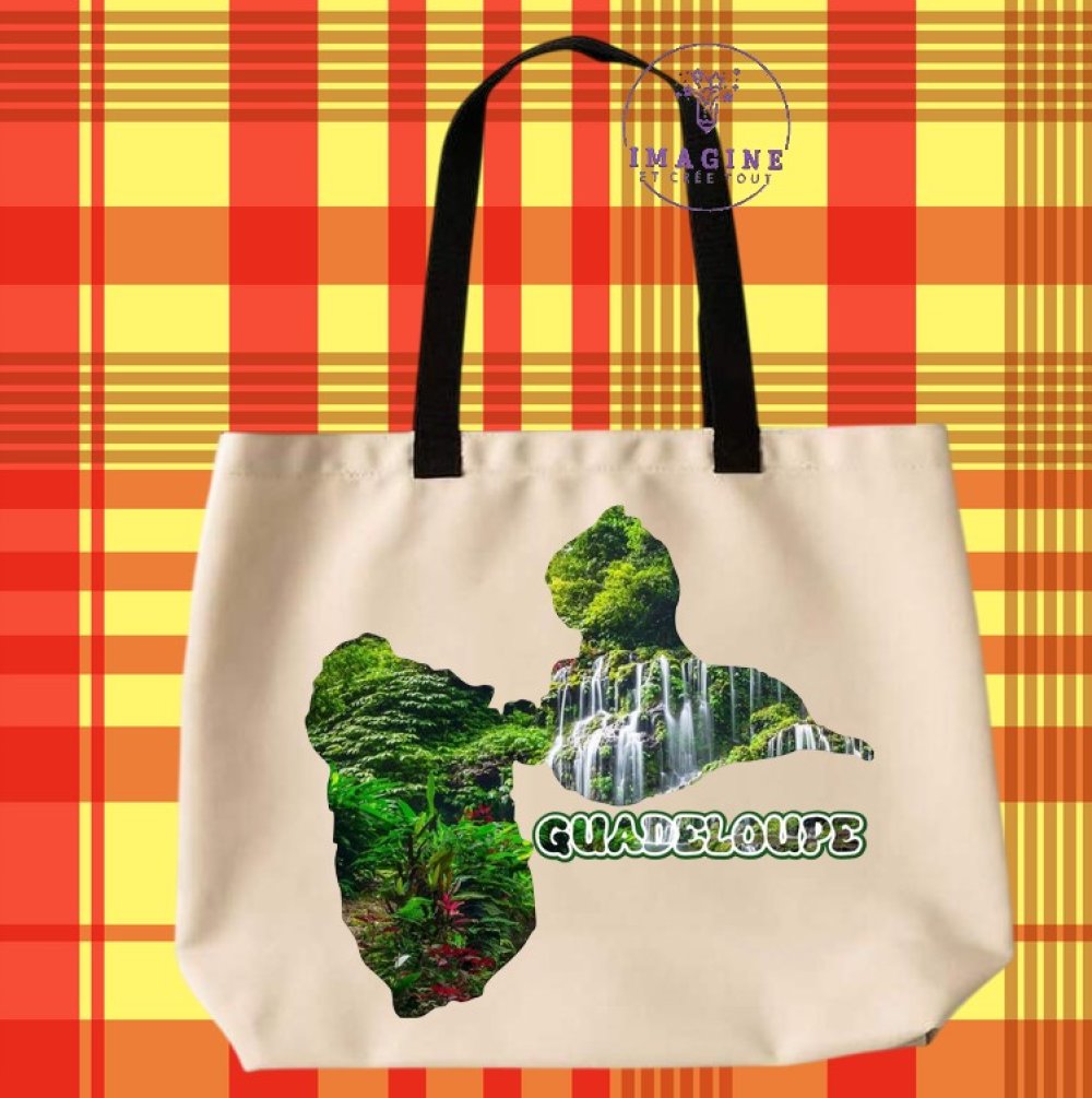 Tote bag taille L - sublimation - paysage guadeloupe - cascade - 971 - forêt - carte - karukera - tropique - soleil - île