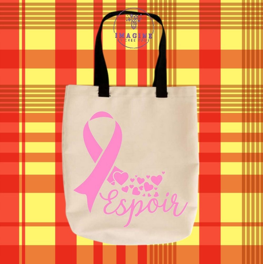 Tote bag taille M - sublimation - femme - octobre rose - papillons - prévention - dépistage - espoir - hope - nœud rose