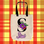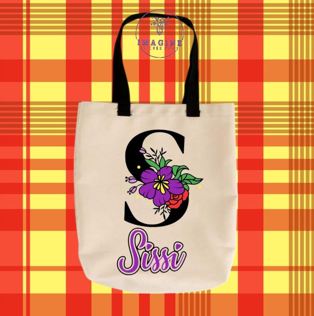 Tote bag taille M - sublimation - initiale - prénom - fleurs - surnom - fille - multicolores - (prénom à preciser)