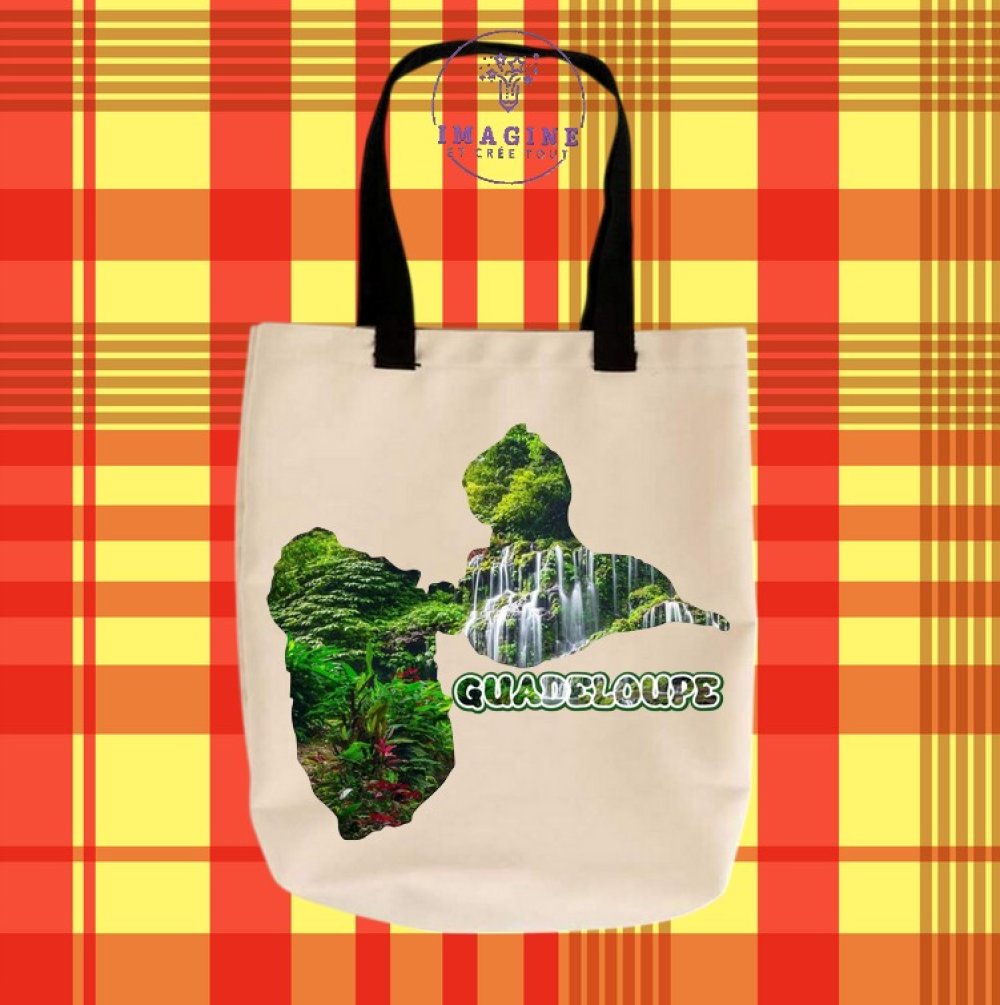 Tote bag taille M - sublimation - paysage guadeloupe - cascade - 971 - forêt - carte - karukera - tropique - soleil