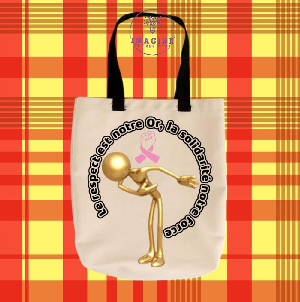 Tote bag taille M - sublimation - solidarité - respect - or - ruban rose - force - octobre - combat - prévention - femme