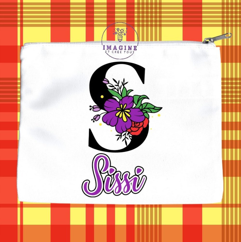 Trousse L - maquillage - sublimation - initiale - prénom - fleurs - surnom - fille - multicolores - (prénom à preciser)