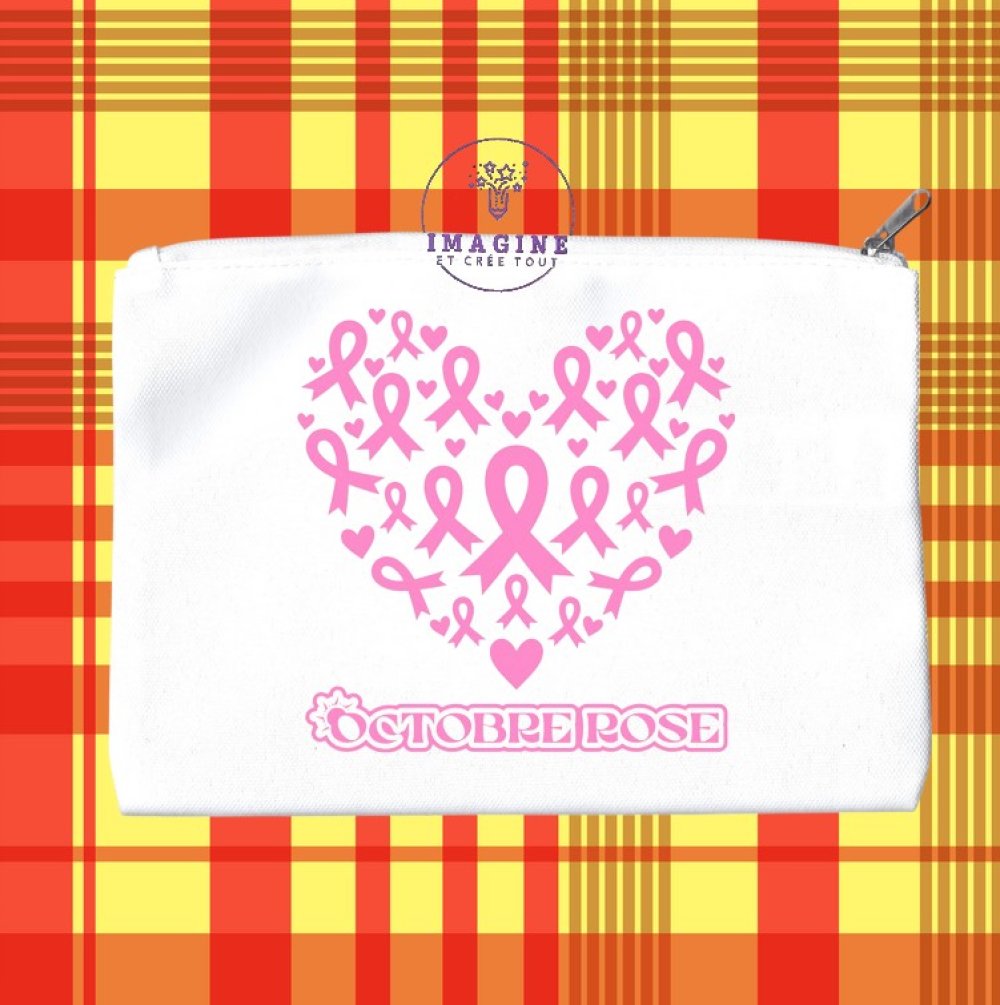 Trousse M - maquillage - sublimation - octobre rose - nœuds - cœurs - prévention - dépistage - femme - combat - hope