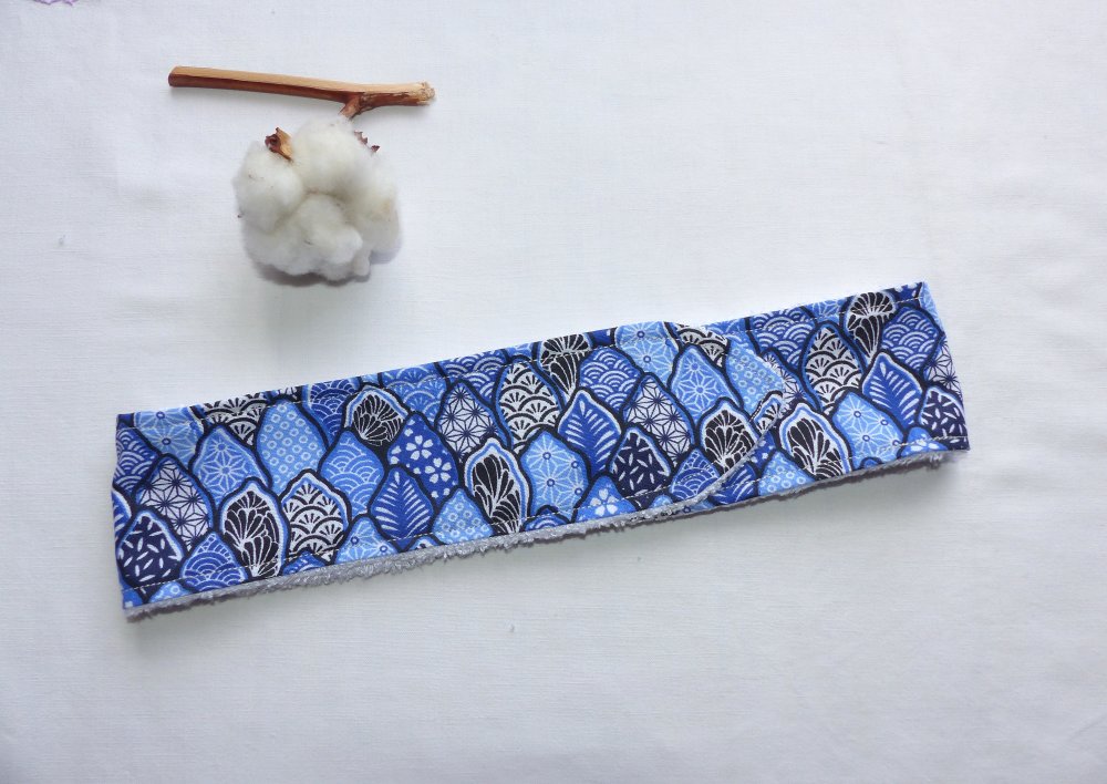 Le tissu extérieur est en coton imprimé japonisant, l’intérieur en éponge de bambou Oeko-Tex blanche certifiée Oeko-Tex, très douce et absorbante.