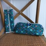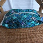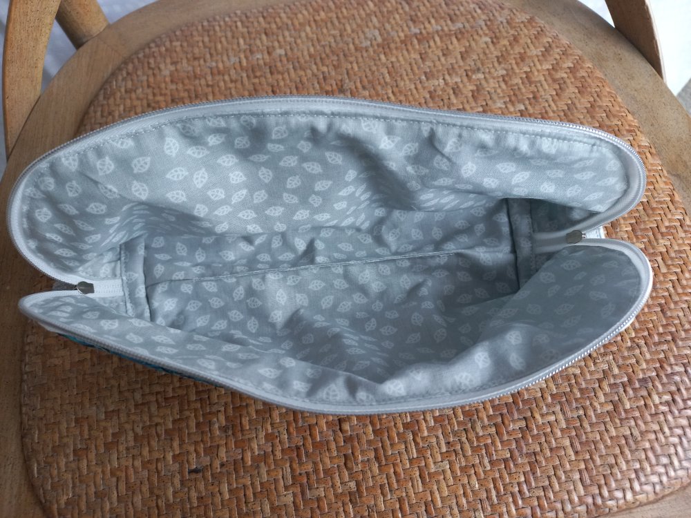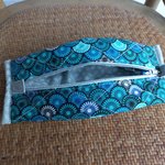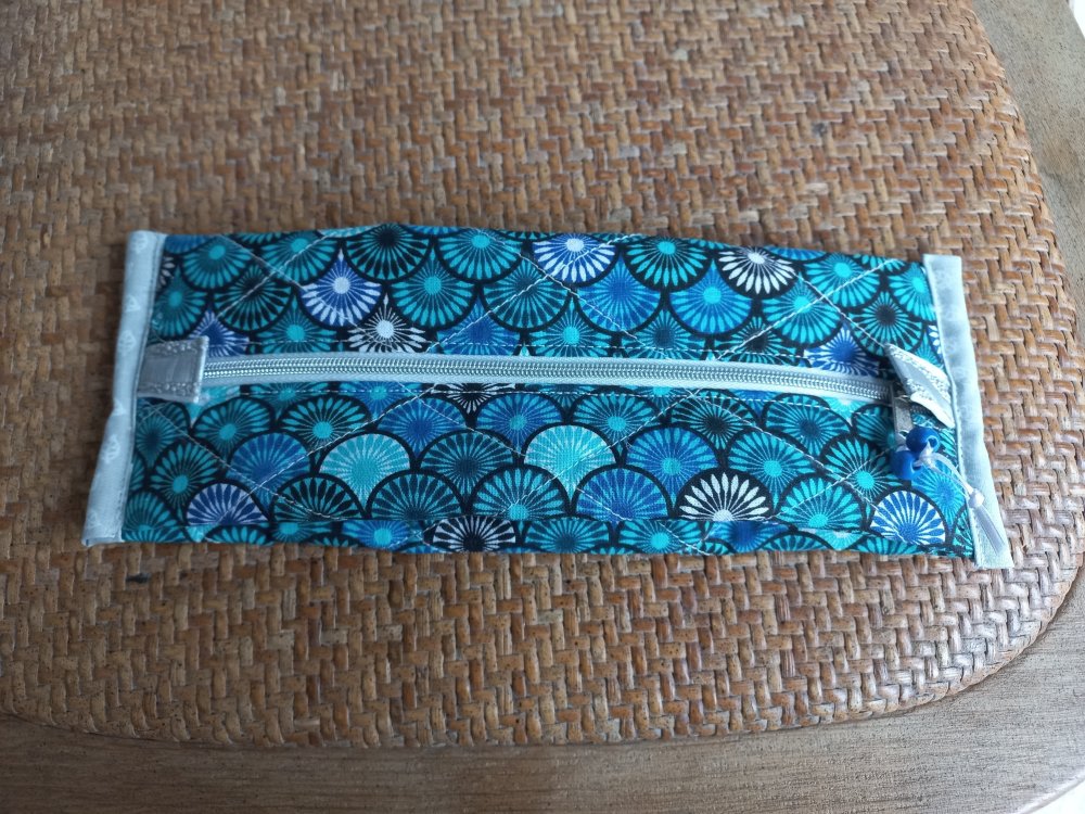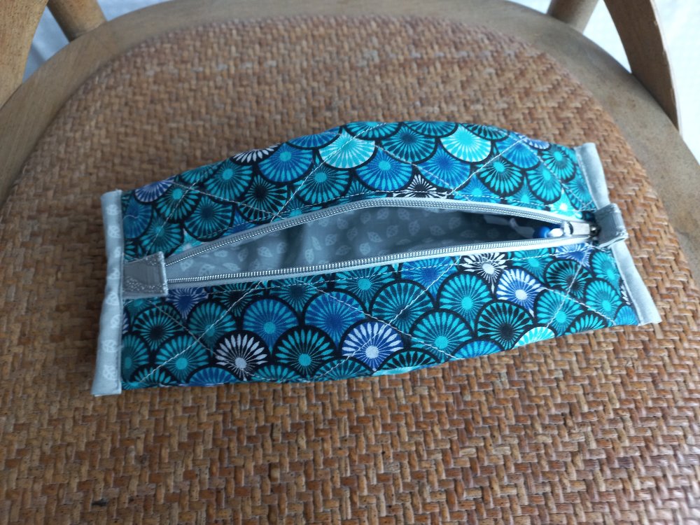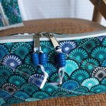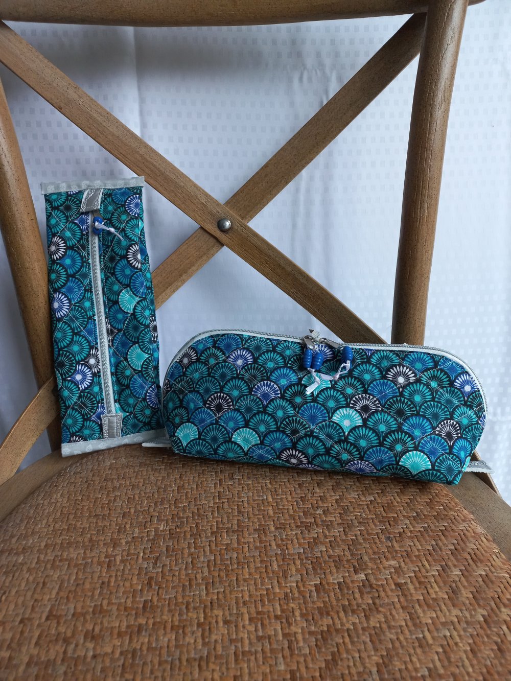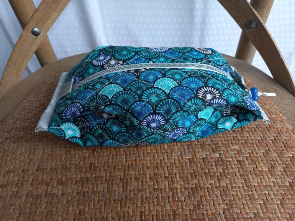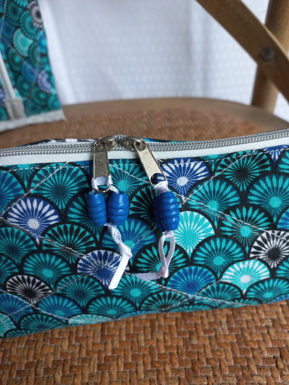Duo de trousses a tout, tissu japonnais aux motifs éventails bleus,matelassé,fermeture éclair argenté,doublé