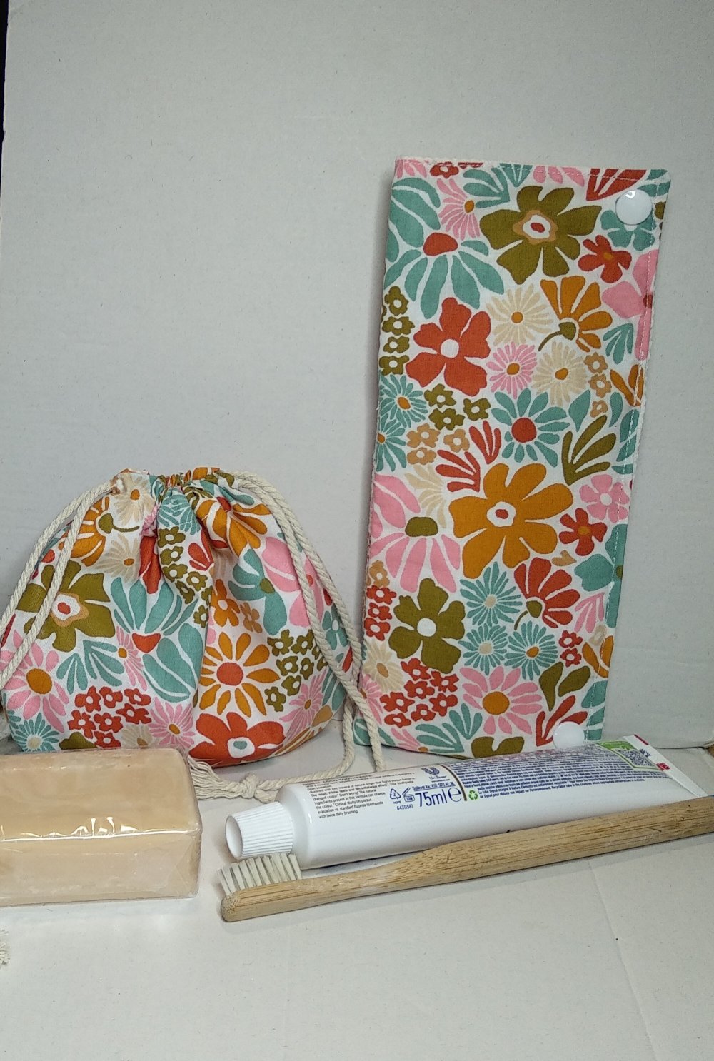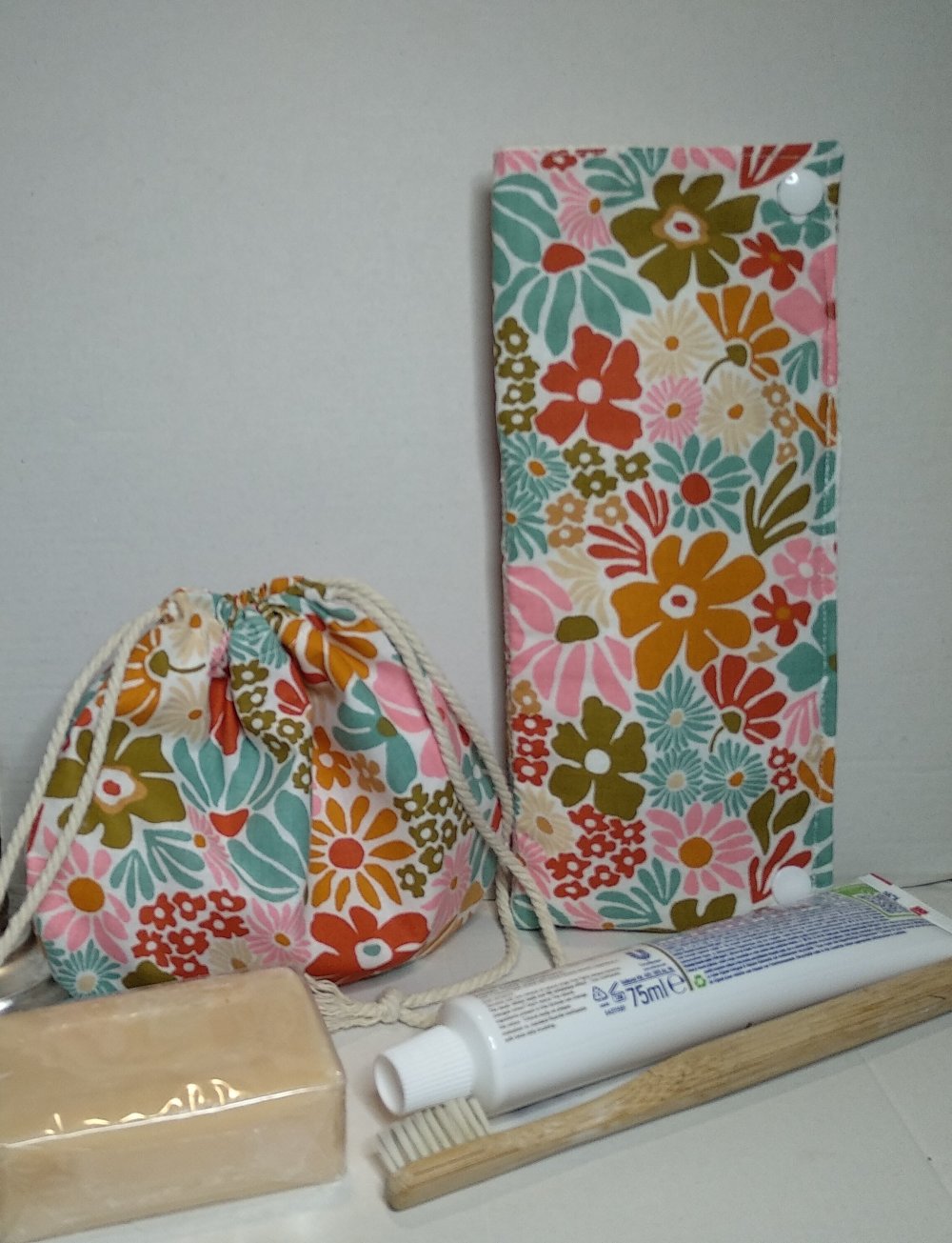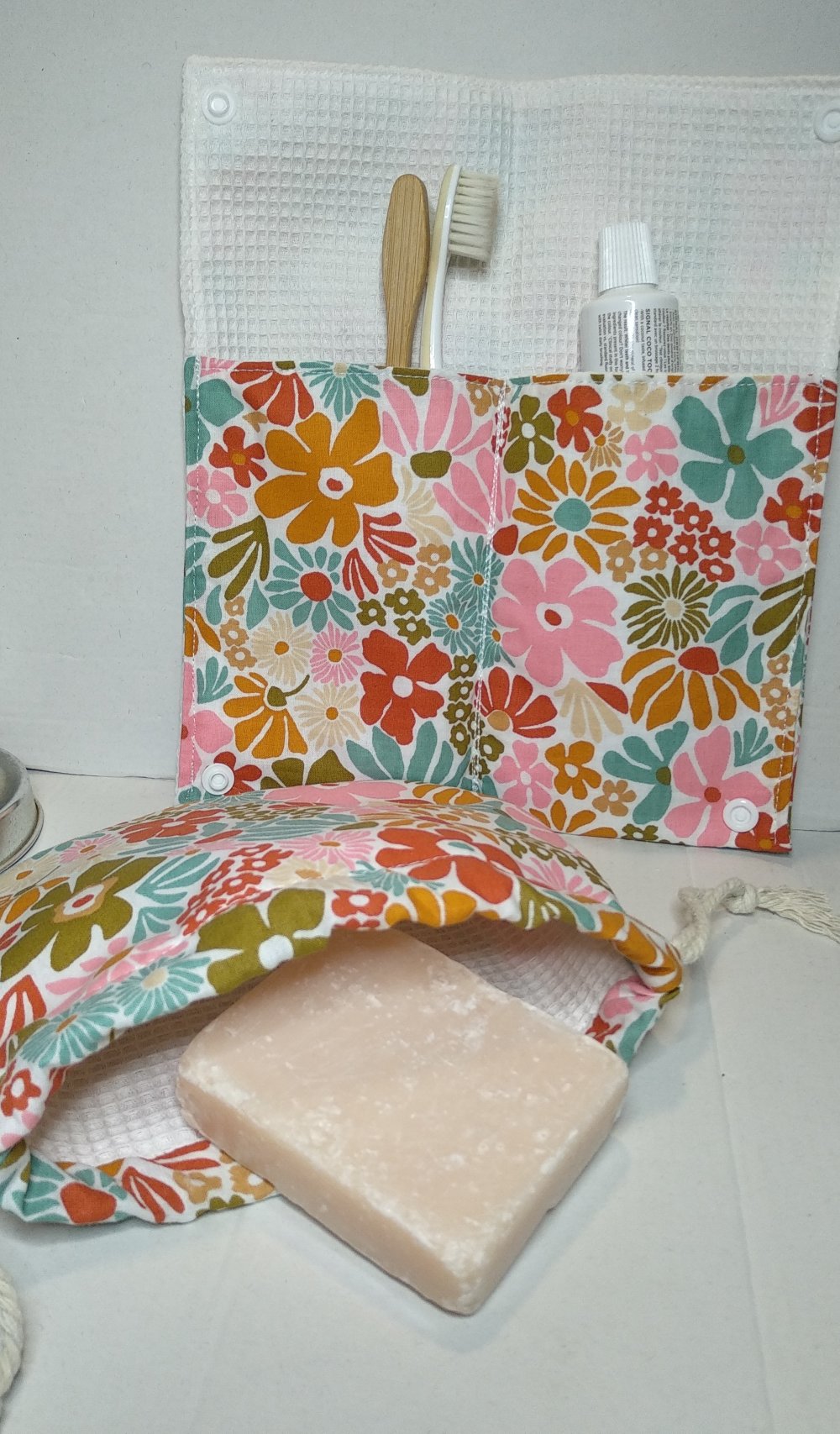 Ensemble assorti, zéro déchet fait main en 100% coton. Pour le savon ou shampooing solide, pour la brosse à dents et le dentifrice