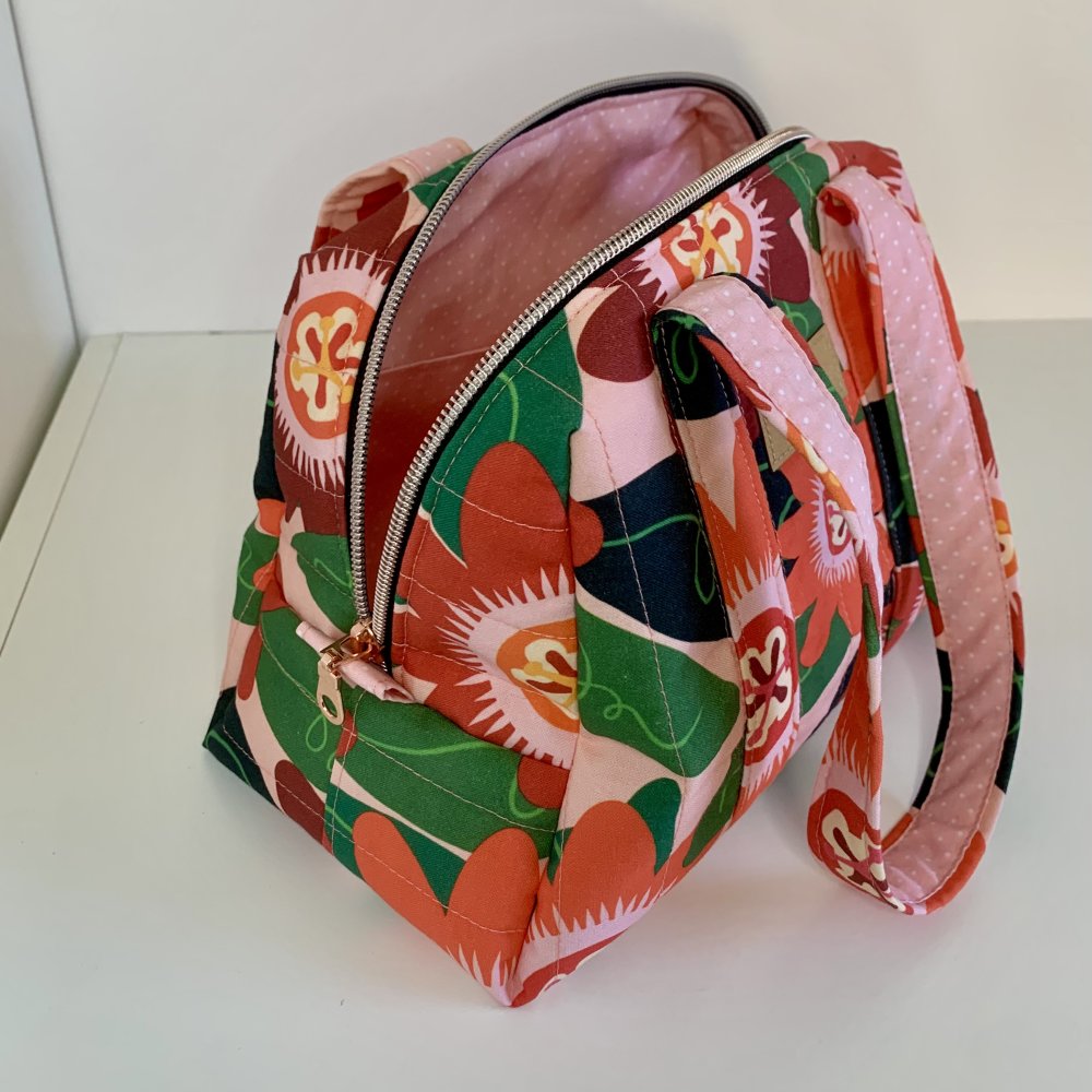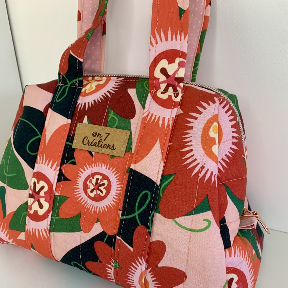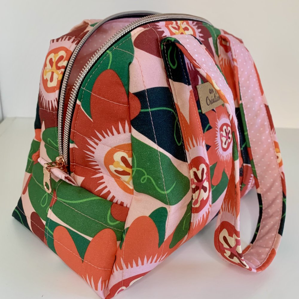 Elle est confectionnée à la main dans un tissu aux motifs Passiflores (La Malotière), très coloré et plein de peps 🌺.