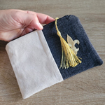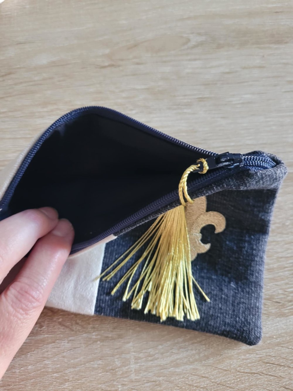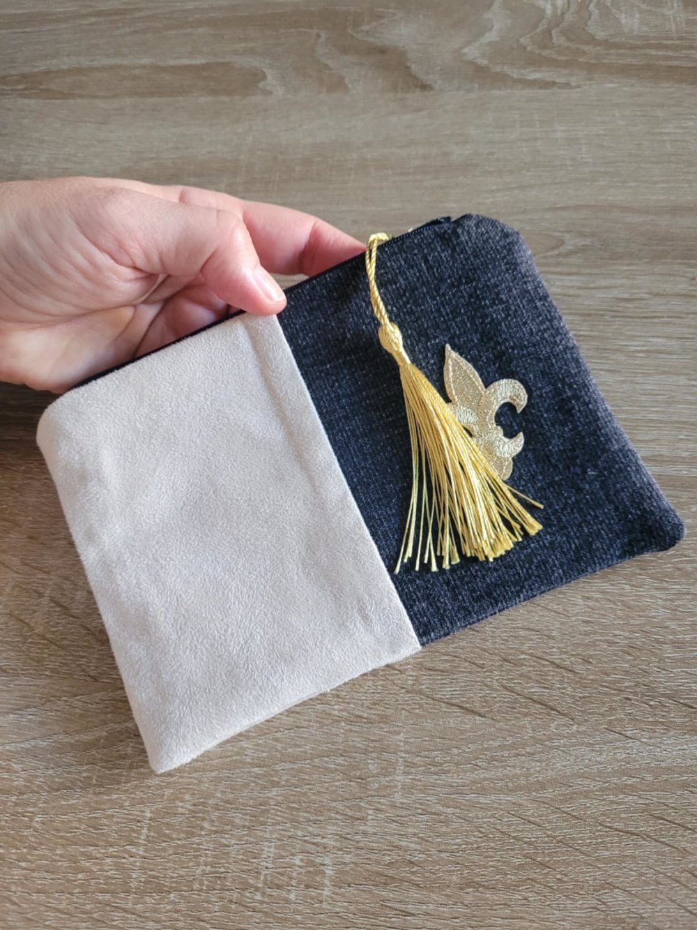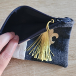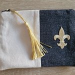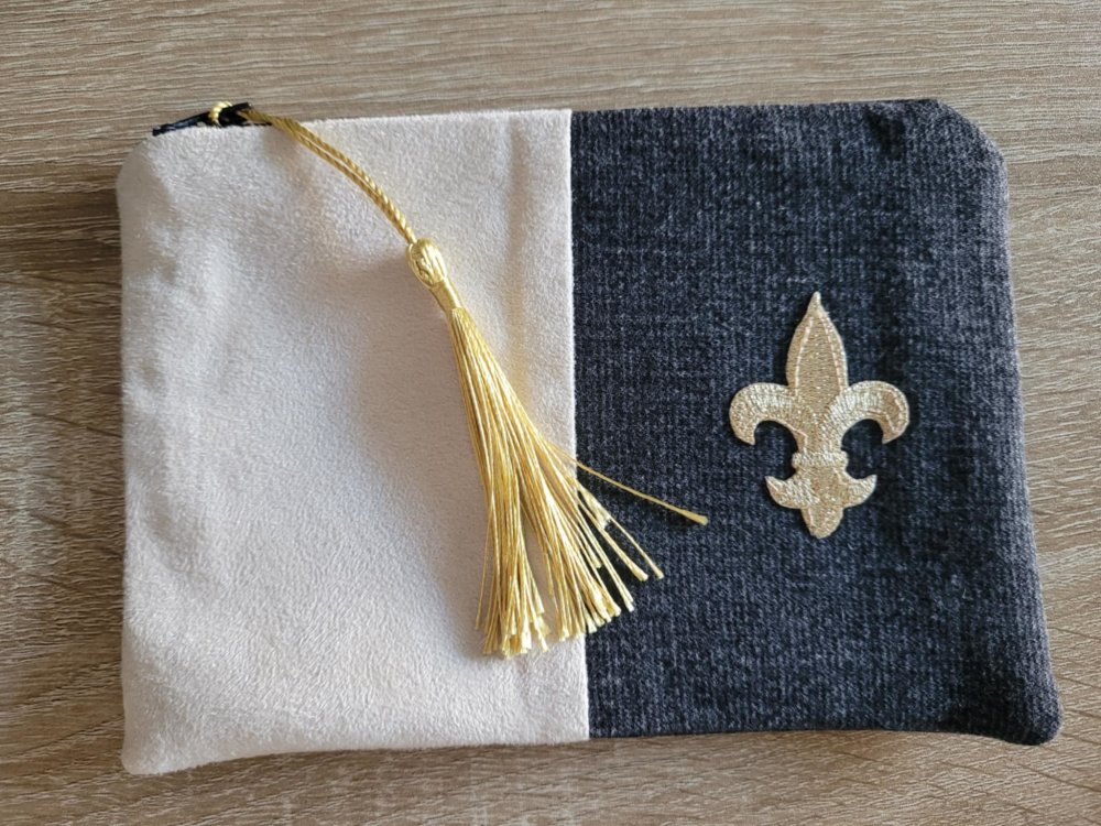 Mini trousse fleur de lys plate en suédine et jean noir ,doublé de tissu coton noir.