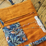 Ecrin à bijoux en lin et coton avec poche zippé rangement bague, collier, boucles d'oreilles