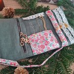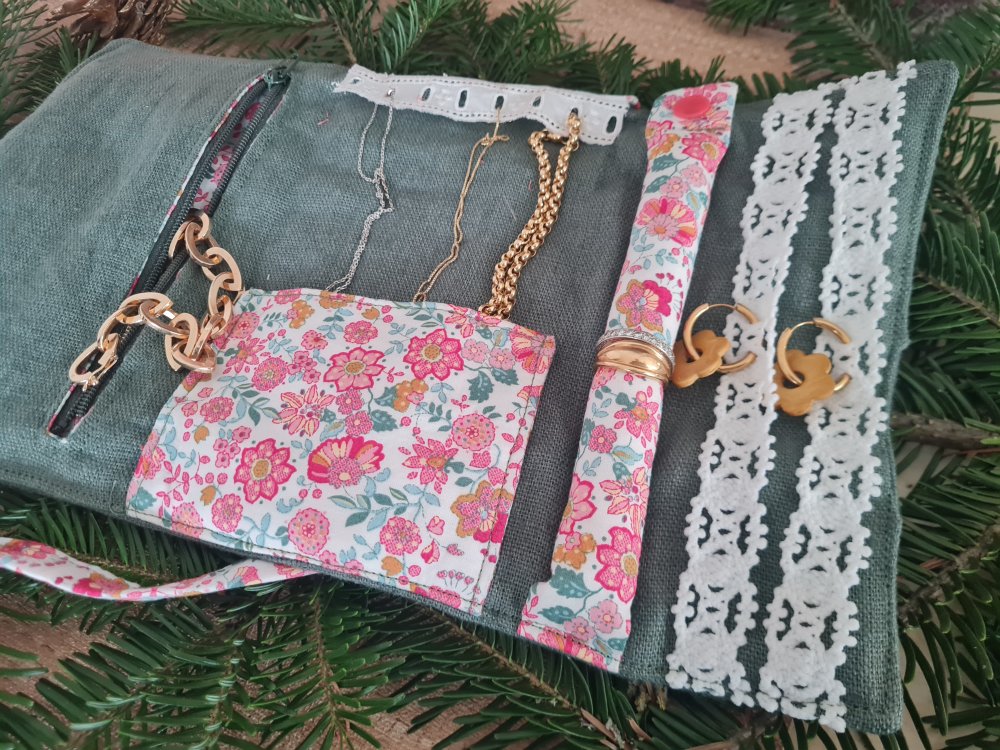 Ecrin à bijoux en lin et coton avec poche zippé rangement bague, collier, boucles d'oreilles