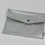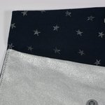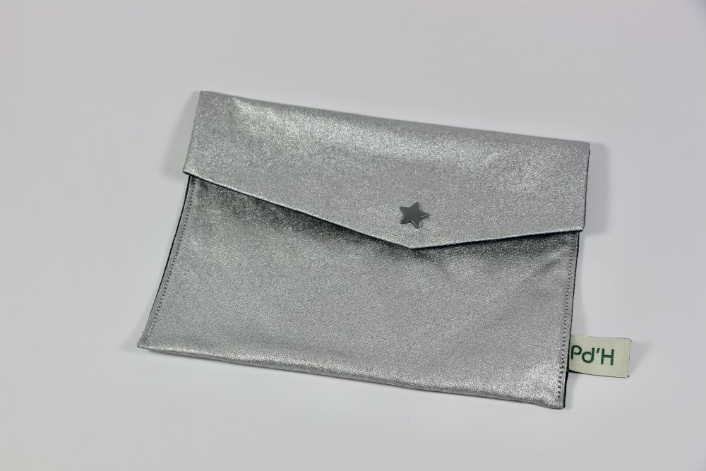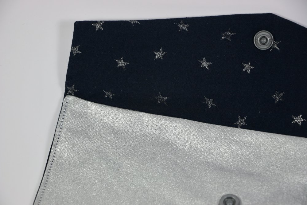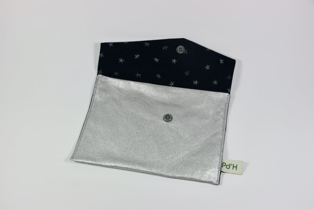 Cette jolie pochette est faite en coton enduit, doublée d'un tissu assorti en coton.