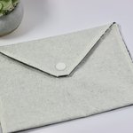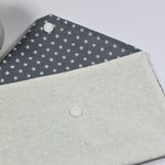 Cette jolie pochette est faite en coton enduit, doublée d'un tissu assorti en coton.