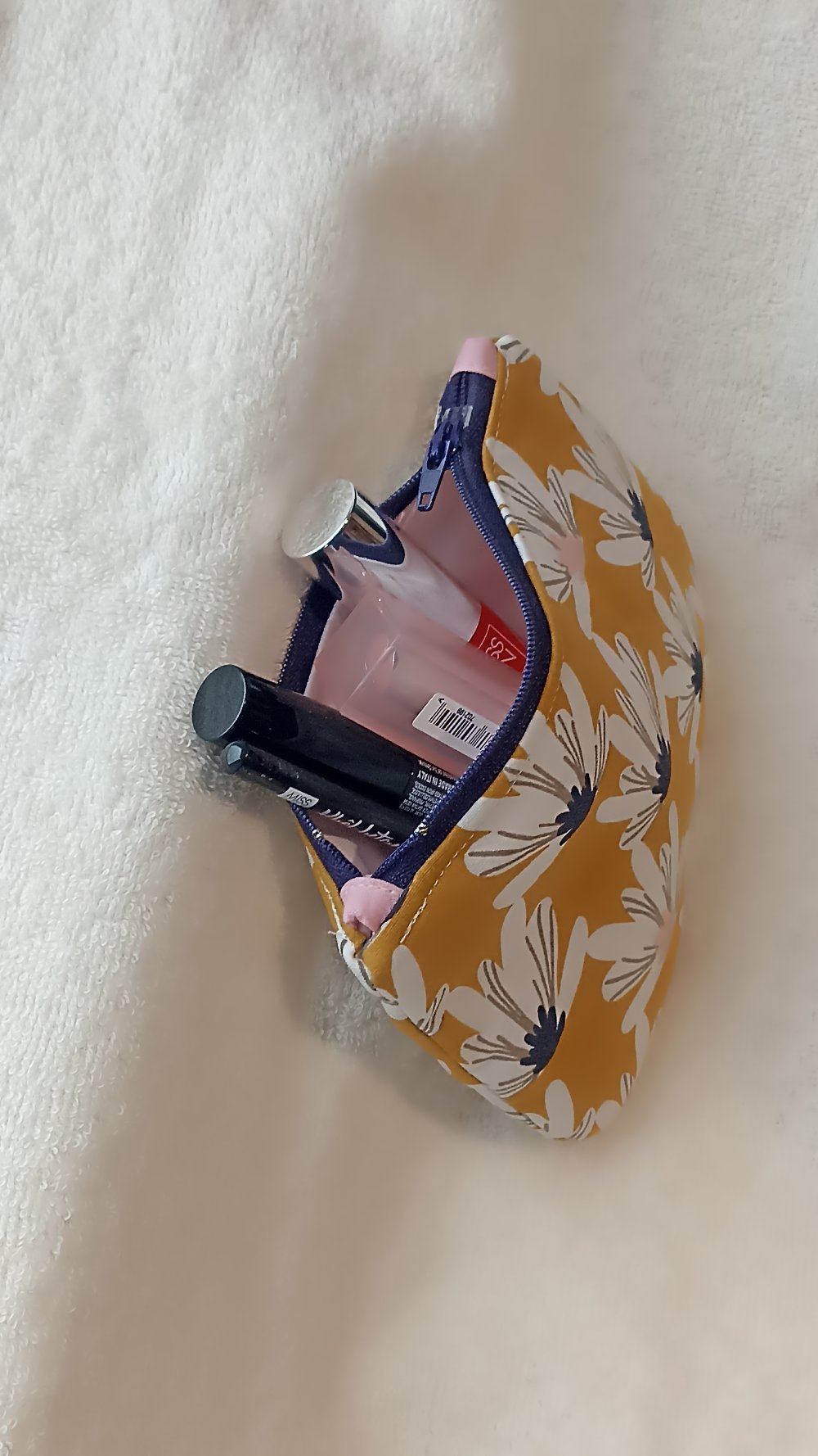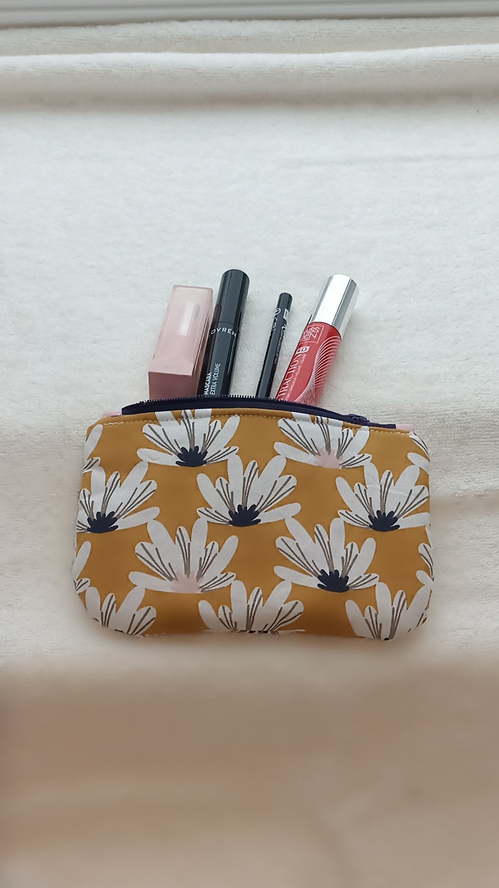 Petite pochette trousse plate en coton entièrement doublée pour un meilleur maintien avec fermeture éclair