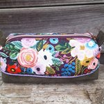 trousse à crayons et stylos pour femme, tissu violet avec des fleurs colorées et faux cuir kaki, trousse de toilette, trousse à crayons et stylos