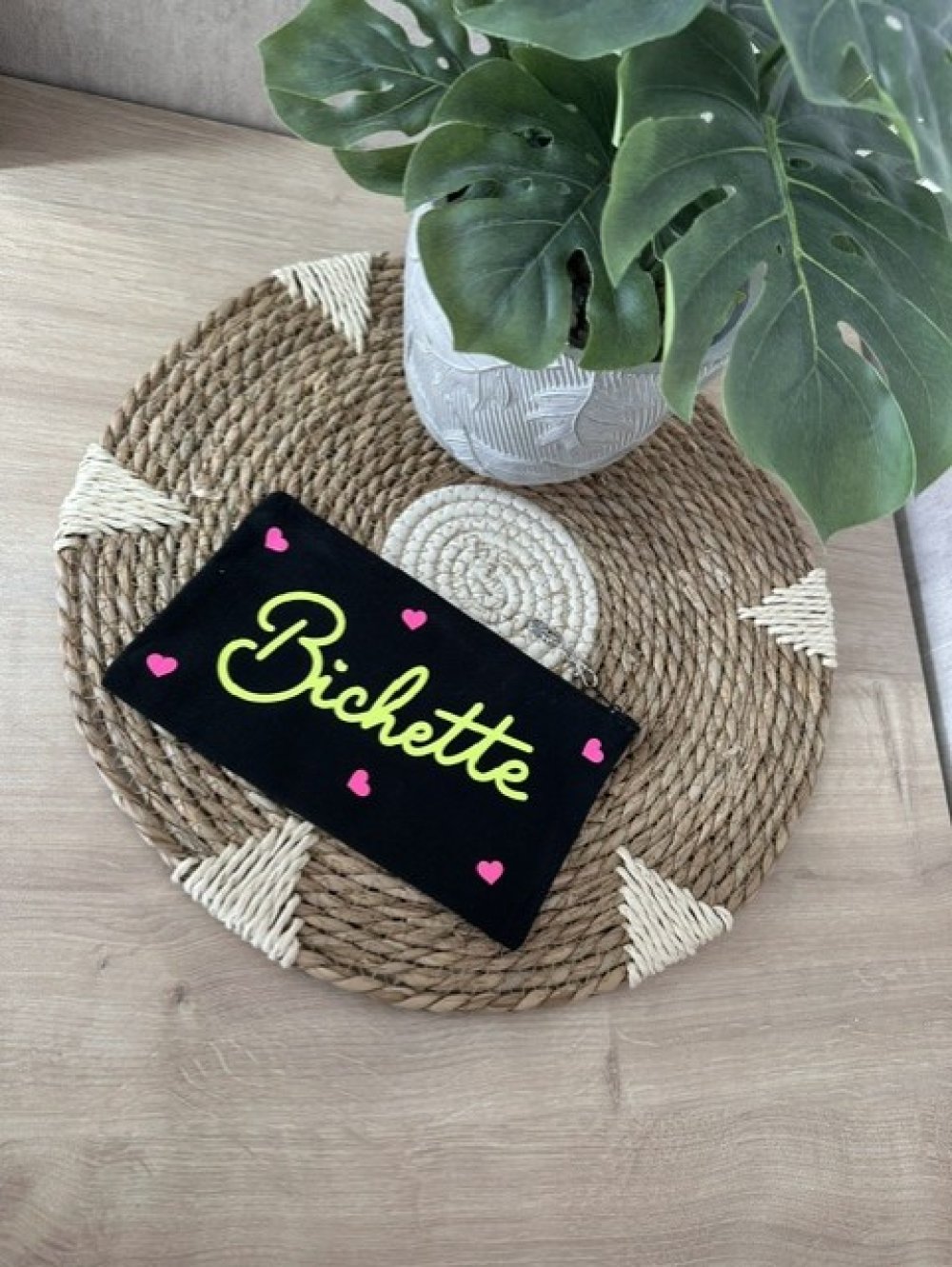 Vous avez la possibilité de faire rajouté un prénom ou autre a l'arrière de la trousse. (le prix tient compte de la personnalisation)
