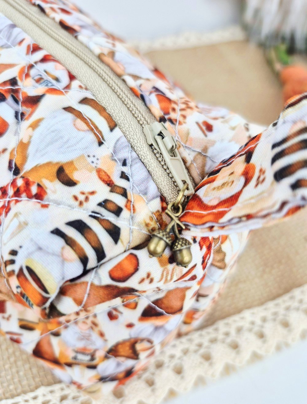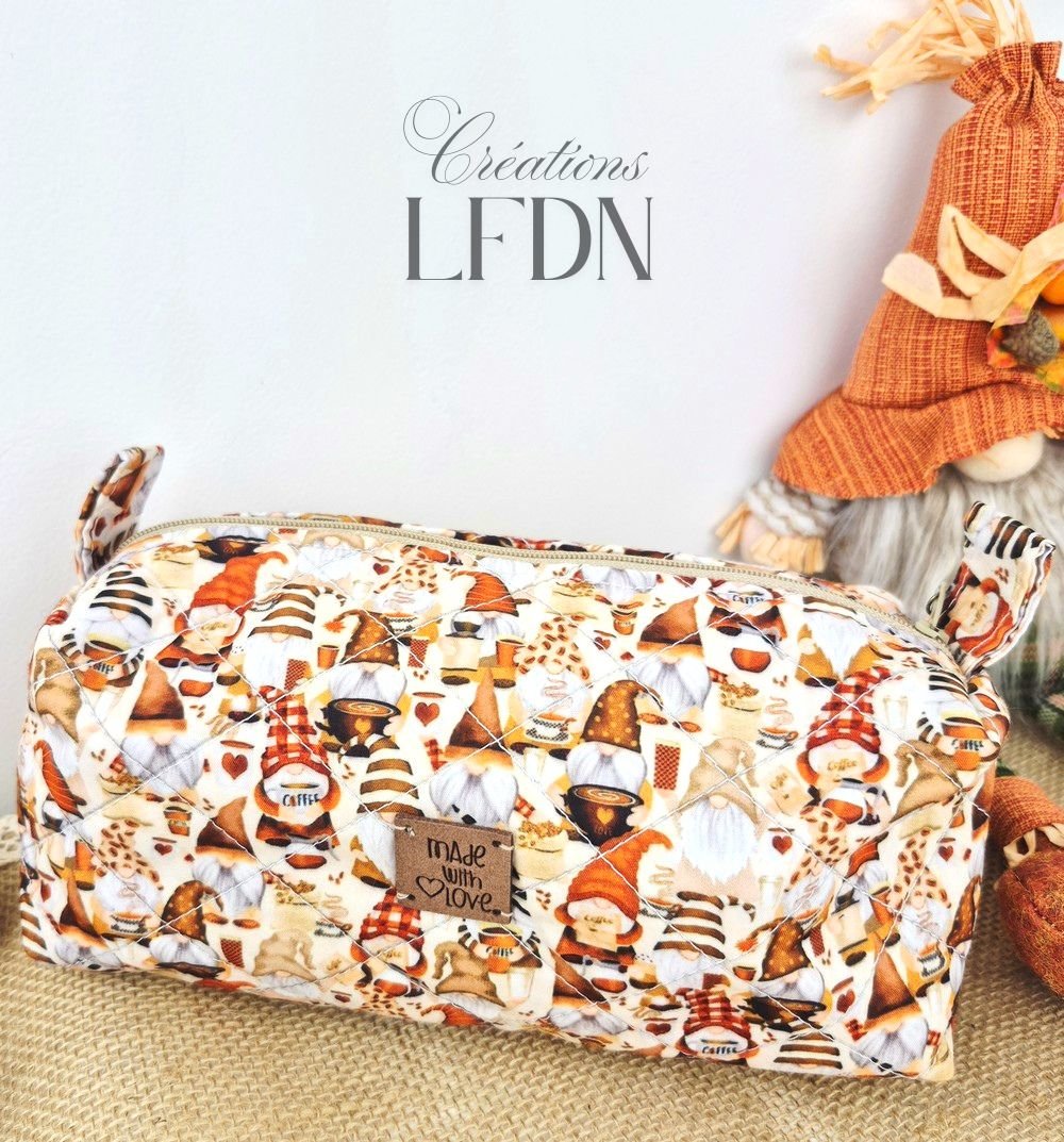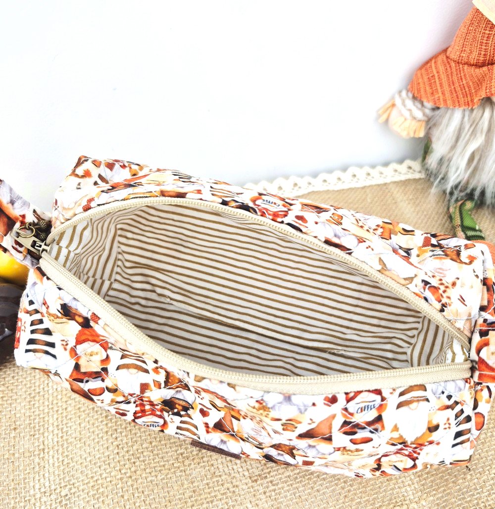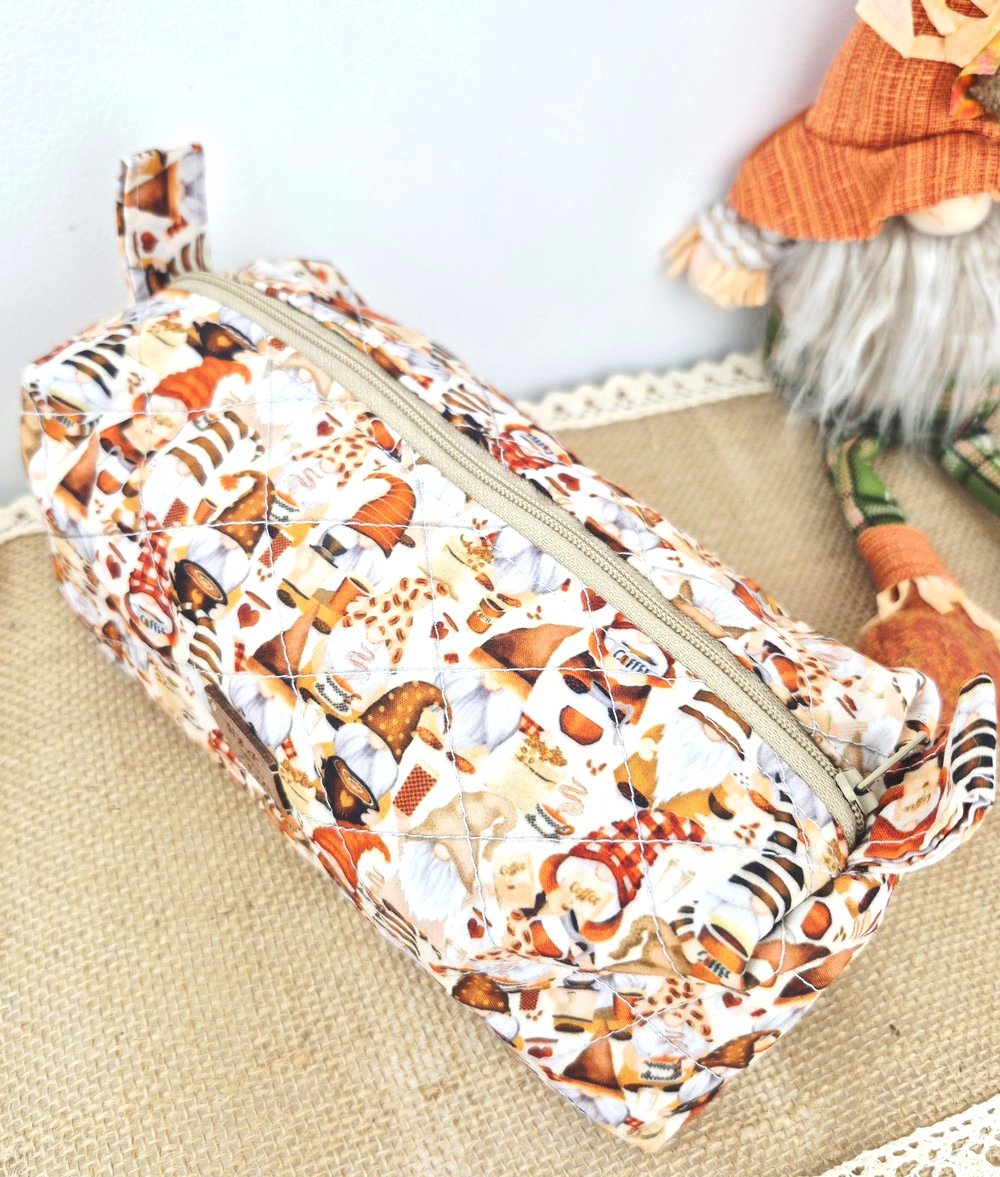 Emportez un peu de magie automnale partout avec vous grâce à notre trousse de toilette matelassée en coton polyester, ornée d'un charmant imprimé de gnomes d'automne. Confectionnée à la main avec soin, cette trousse allie fonctionnalité et esthétique, parfaite pour ranger vos essentiels de beauté et de soins.