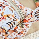 - Fermeture : Équipée d'une fermeture éclair robuste pour sécuriser vos objets tout en ajoutant une touche de style. Détail breloque métal bronze glands