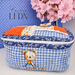 Cette trousse de toilette artisanale est non seulement fonctionnelle mais aussi pleine de charme avec ses motifs colorés et son illustration adorable de nounours.