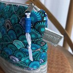 la fermeture éclair est argenté, avec un petit ruban et une perle bleue pour aider a l'ouverture de la trousse