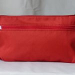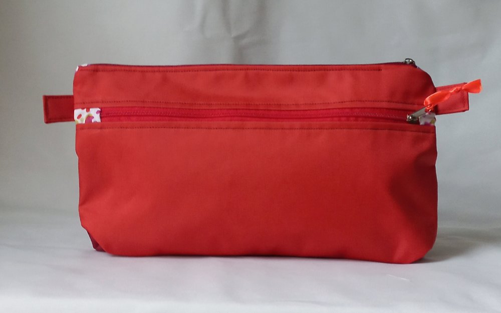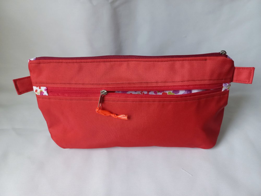 nouvelle trousse double, bi-colore à 2 fermetures éclairs : orange et bordeaux