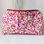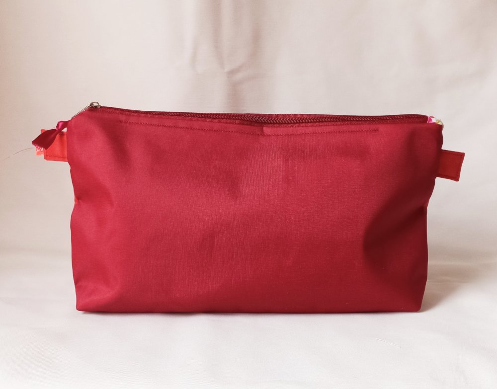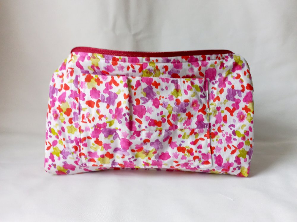pochette plate,tissu imperméable, a 2 fermetures éclairs,bi-colore,doublée fleurie,