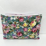 Trousse maquillage zippée en tissu coton vert menthe à fleurs