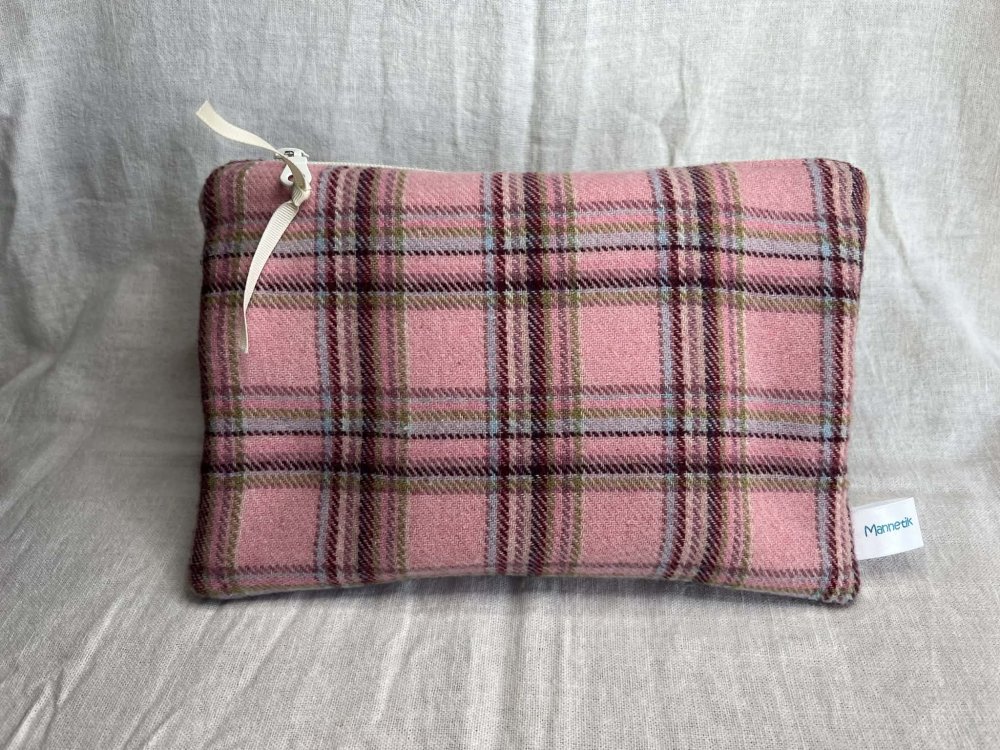 La trousse plate taille M en tartan de laine mélangée de la Collection Rose poudré