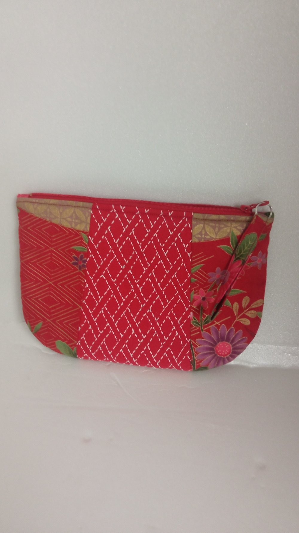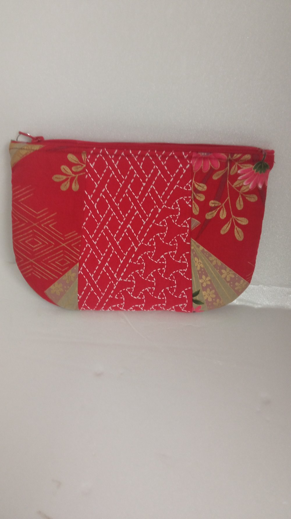 Trousse - pochette - porte monnaie en tissu japonais et broderie "sashiko"