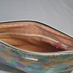 Son tissu effet marbré mêle subtilement des nuances de vert, violet, bleu et de magnifiques éclats dorés pour un rendu chic et original.