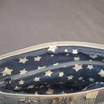 Adoptez un style casual chic avec cette trousse au motif patchwork effet jean. Son design original imite différentes pièces de denim pour un rendu tendance et urbain. La base en simili cuir bleu clair apporte une finition douce et élégante, tandis que la fermeture zippée ornée d’une petite étoile dorée ajoute une touche raffinée.