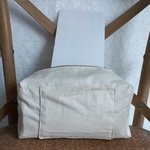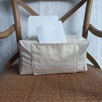 voici un vanity ou lunch bag ou vanity de toilette, en toile rayée beige et écrue, pour le haut du vanity,