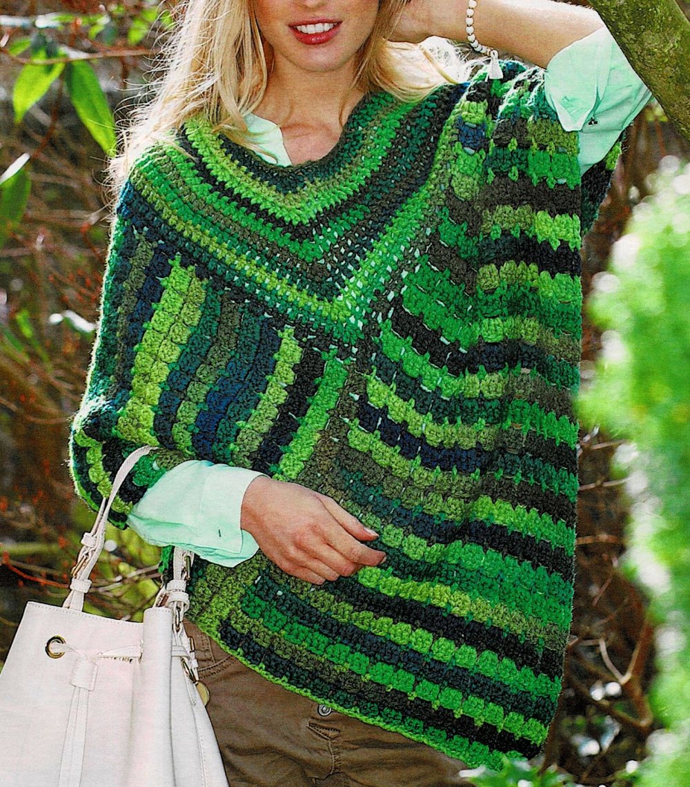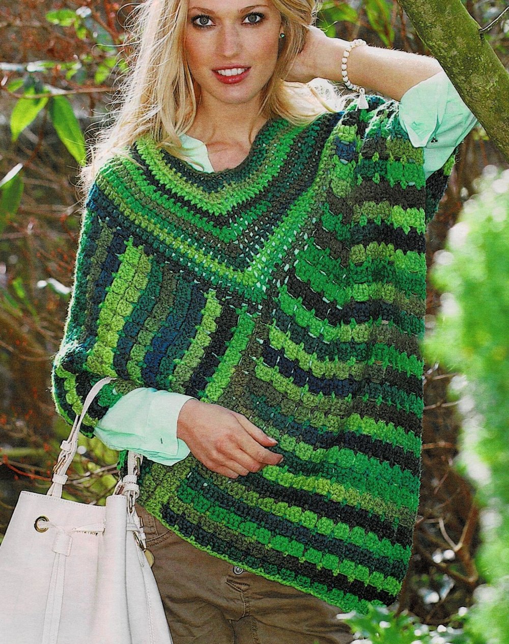 Sur la 3ème image , je vous présente la grille du poncho qui vous donnent une idée pour réaliser ce magnifique poncho en vert chiné !