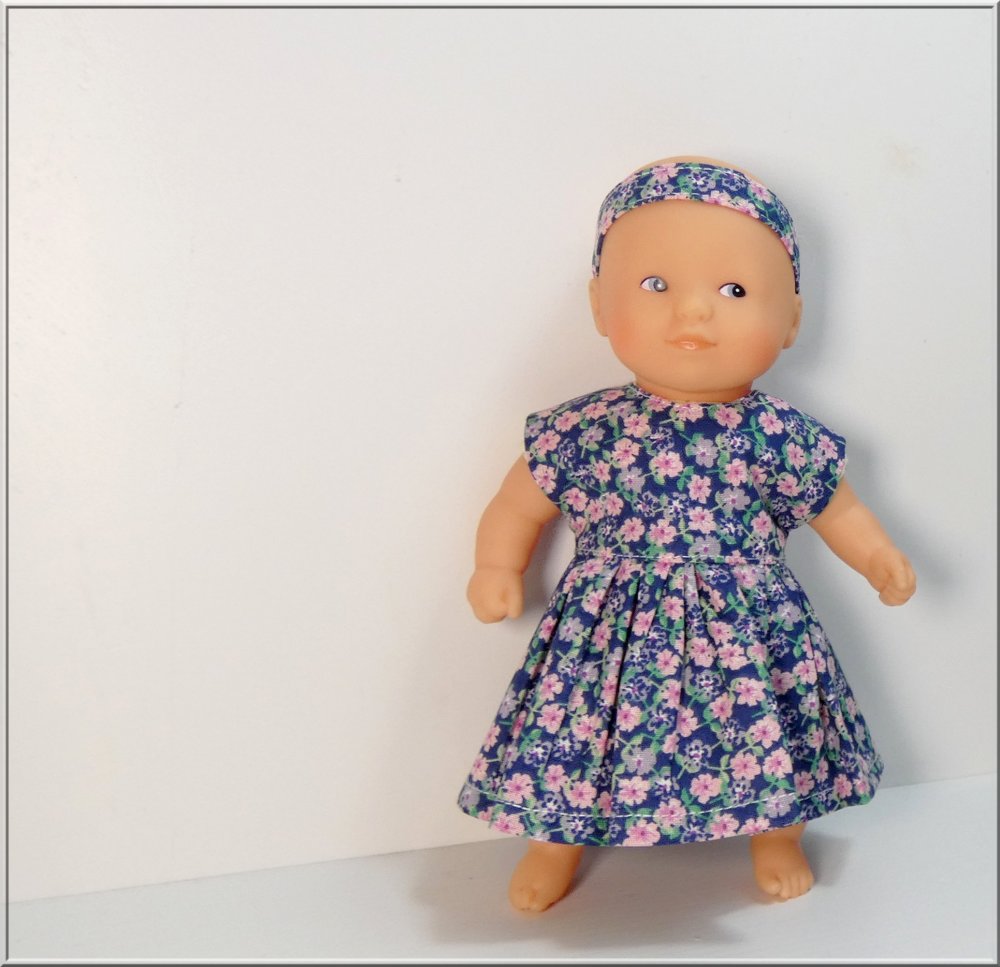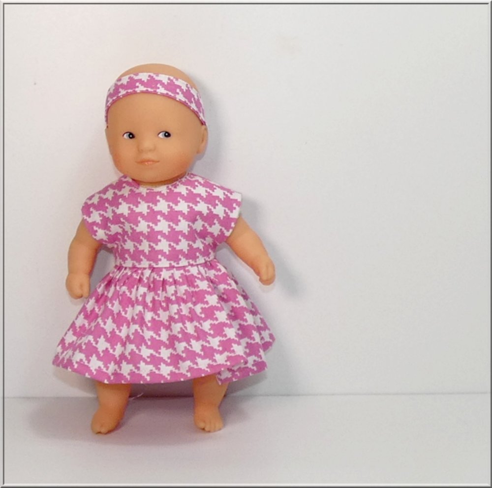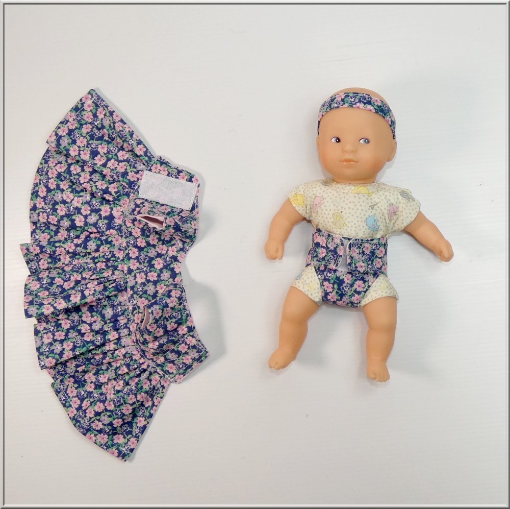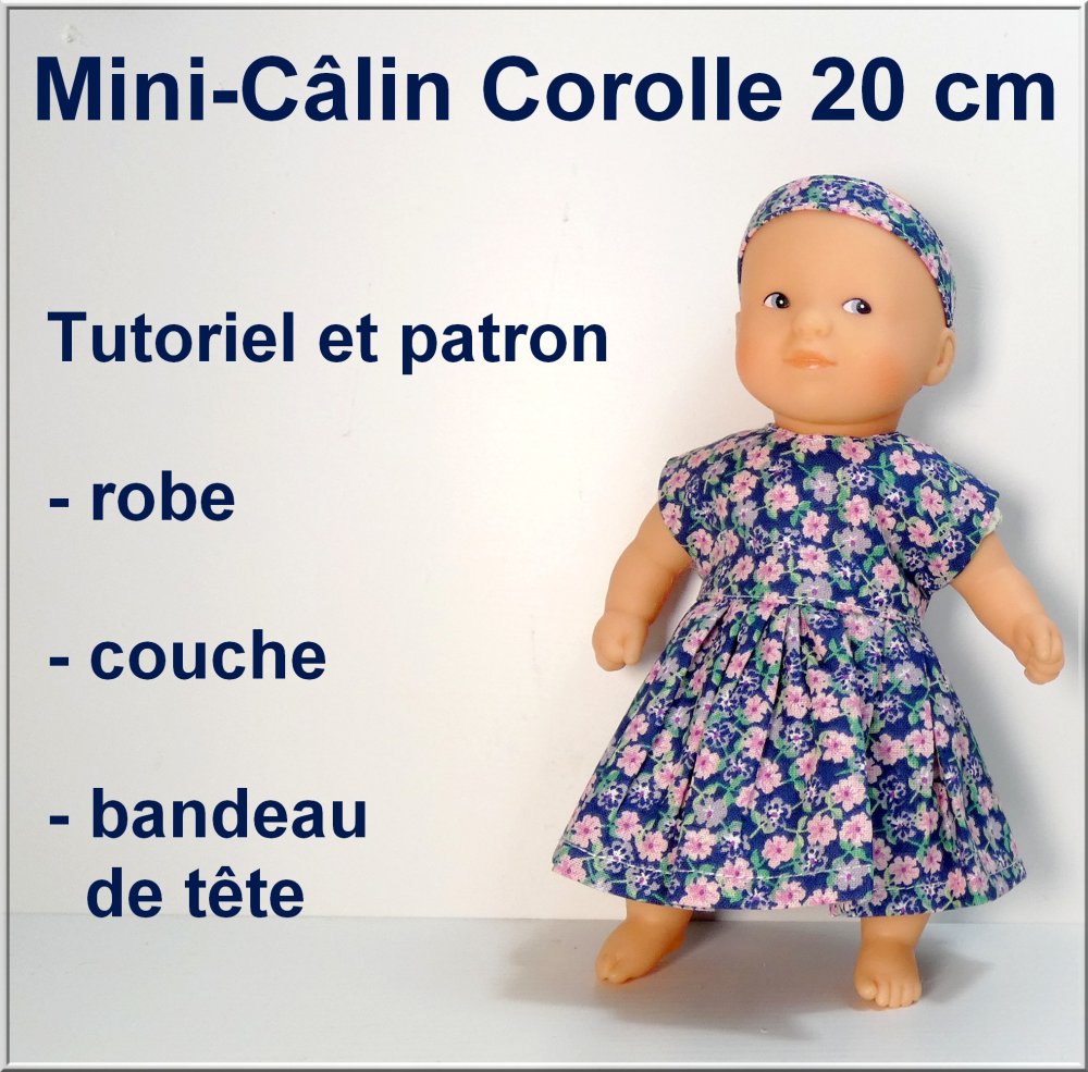 Tutoriel et patron pour réaliser une robe, une couche et un bandeau de tête pour Mini Câlin Corolle 20 cm.
