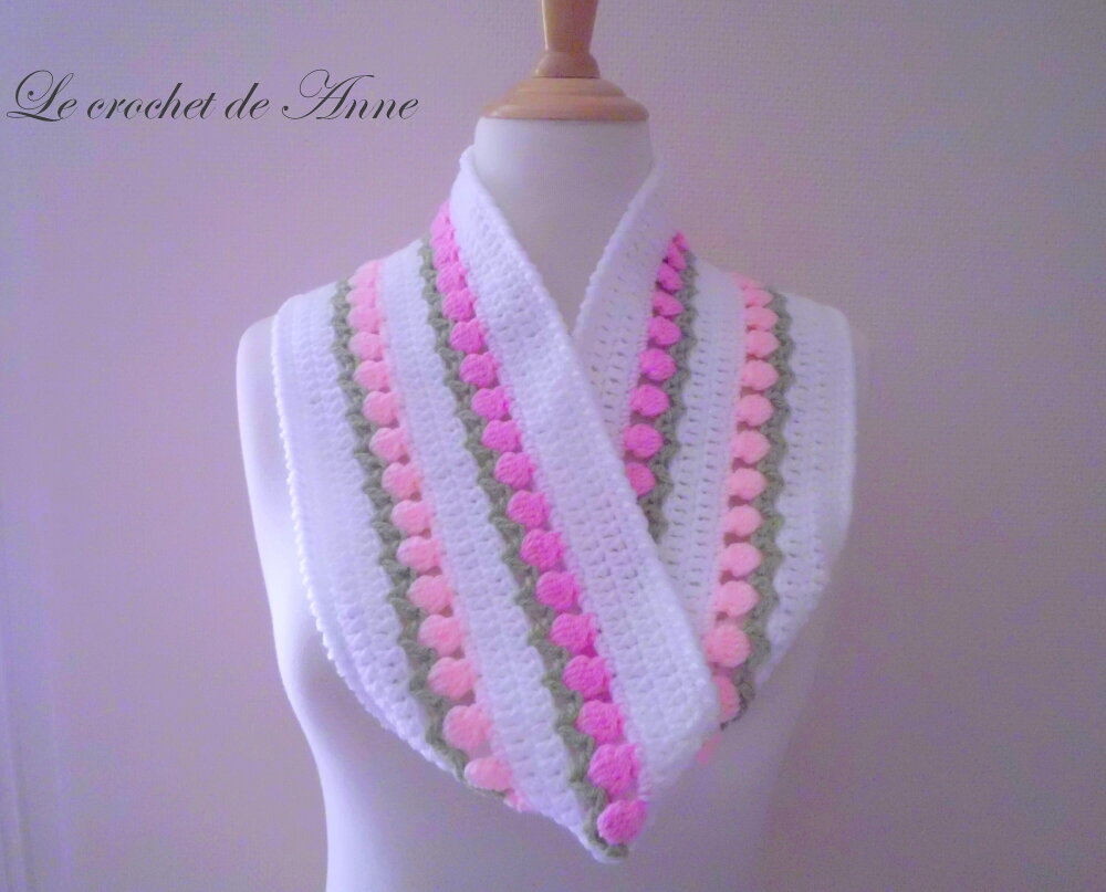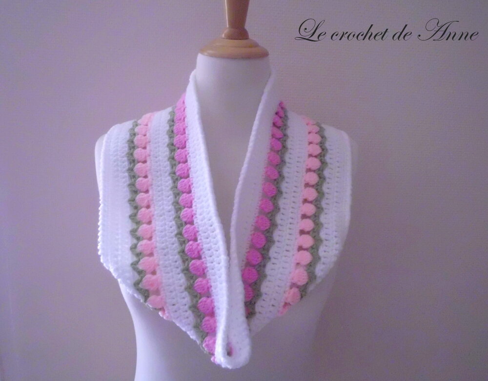 Snood / Tour de cou circulaire orné de jolis rangs fleuris au crochet !