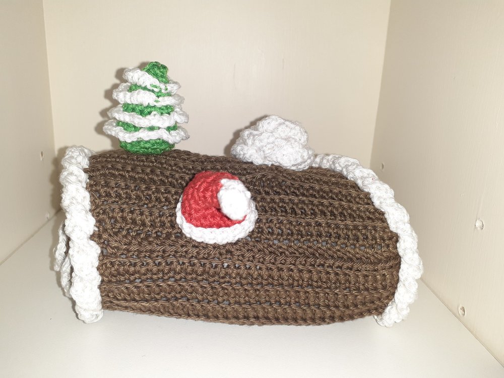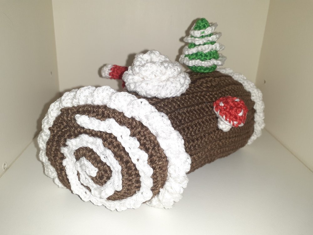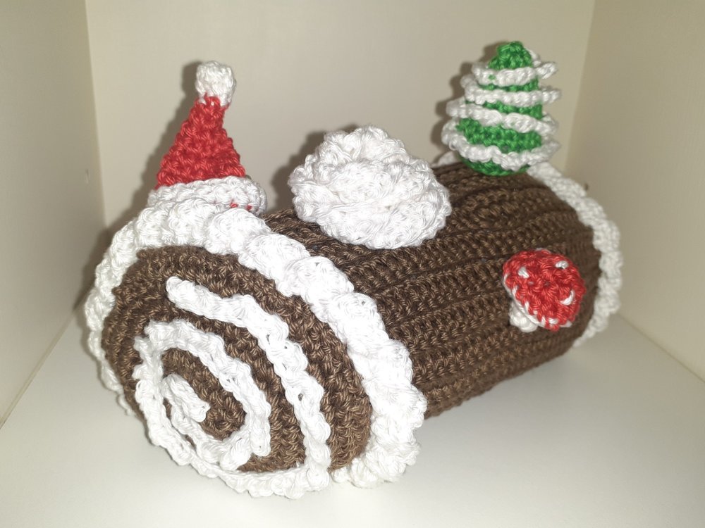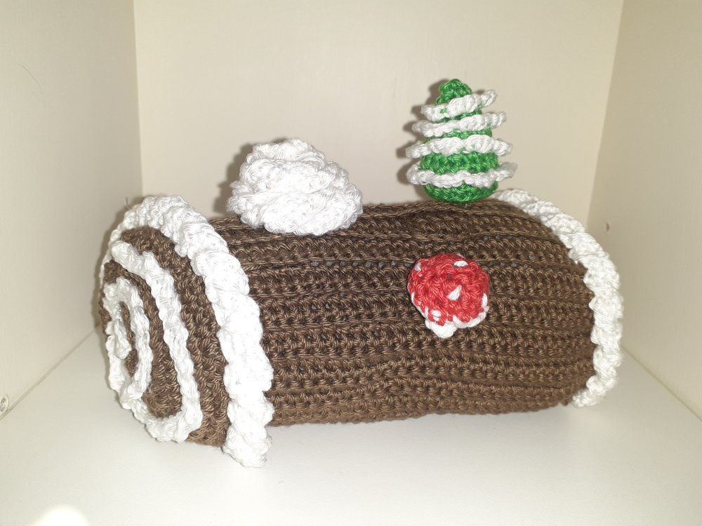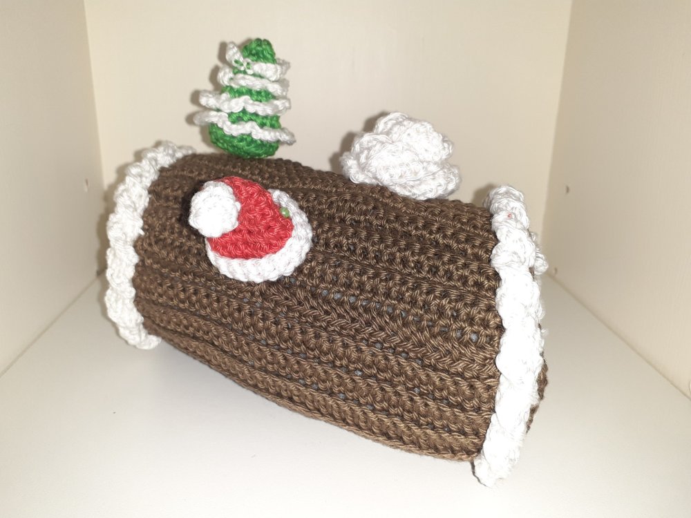 Pour info : crocheté en 3, la bûche mesure environ 17 x 13 x 10 cm.