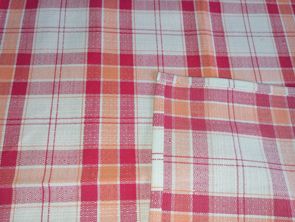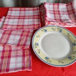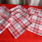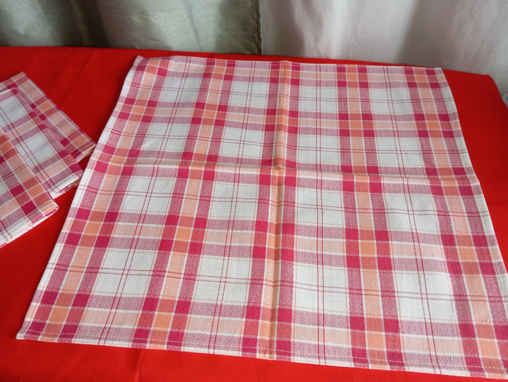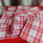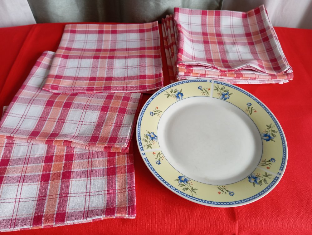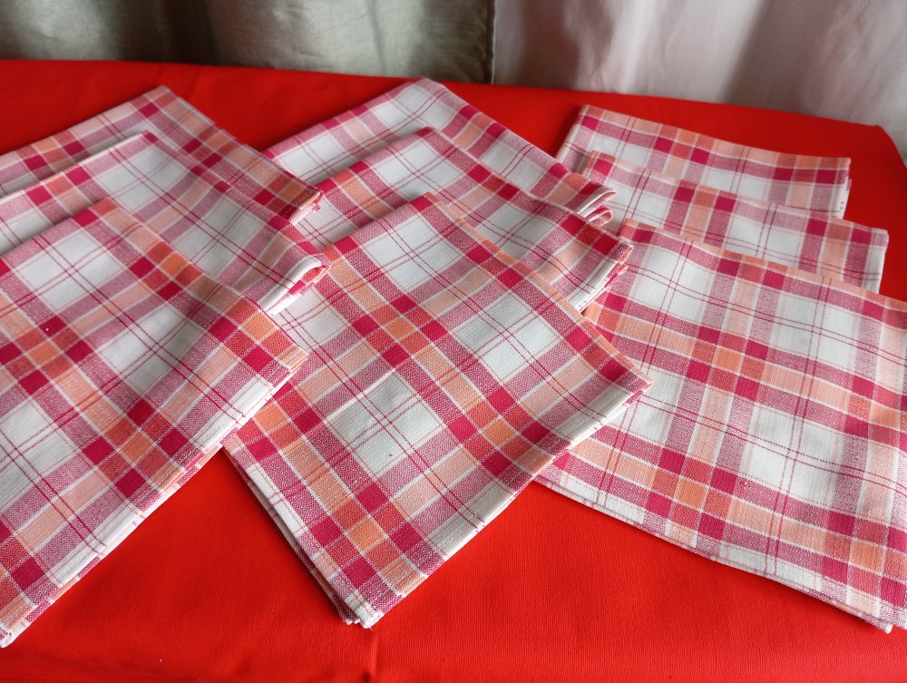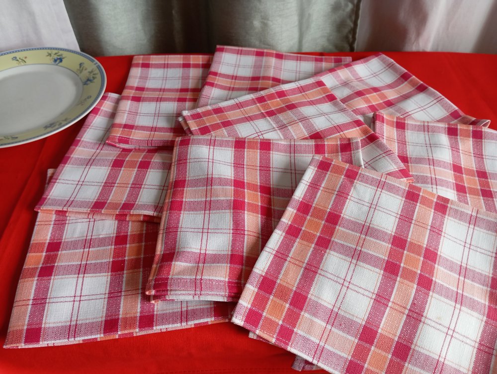lot de 9 serviettes de table en pur coton à carreaux rouge/blanc/orange.