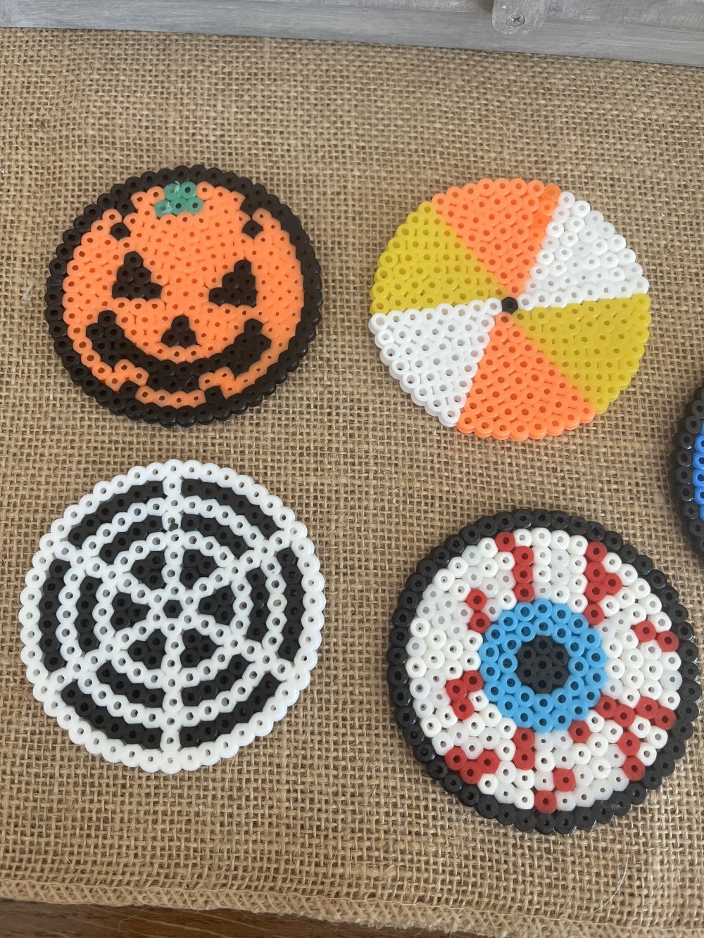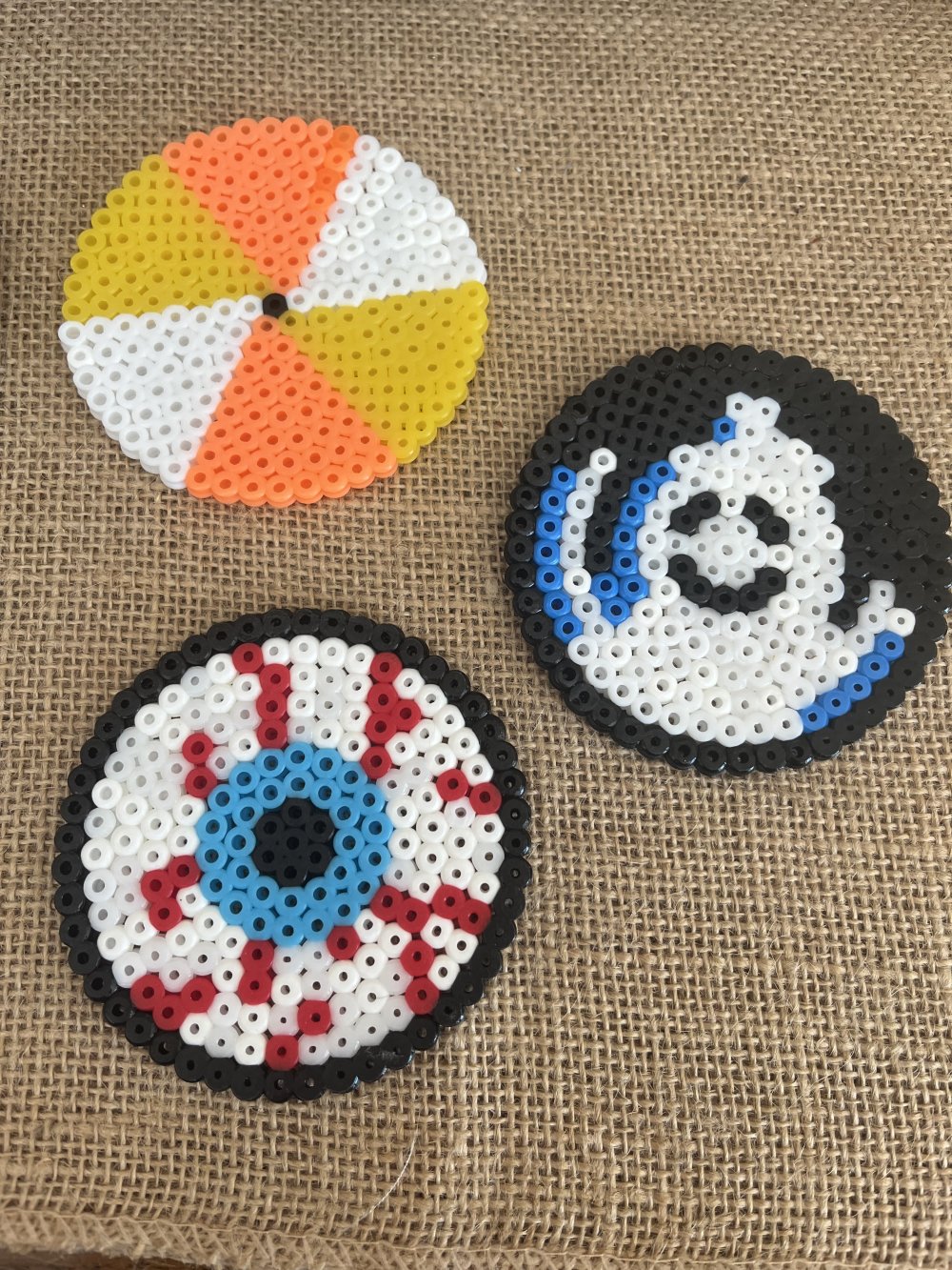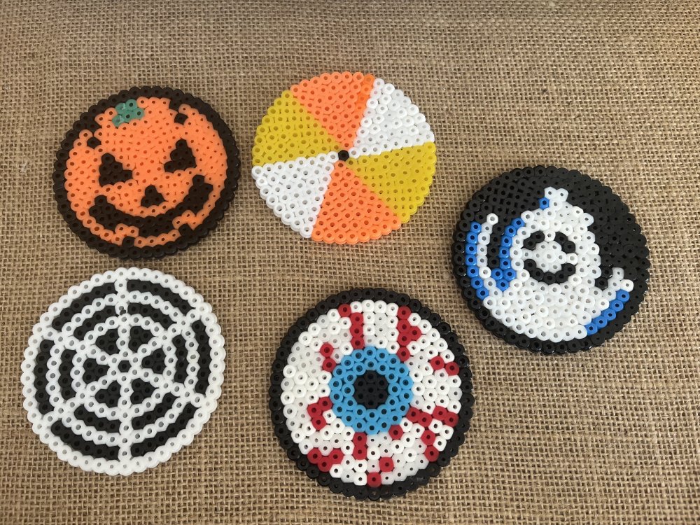 Voici 5 dessous de verre rond effrayants , réalisés avec des perles Hama.