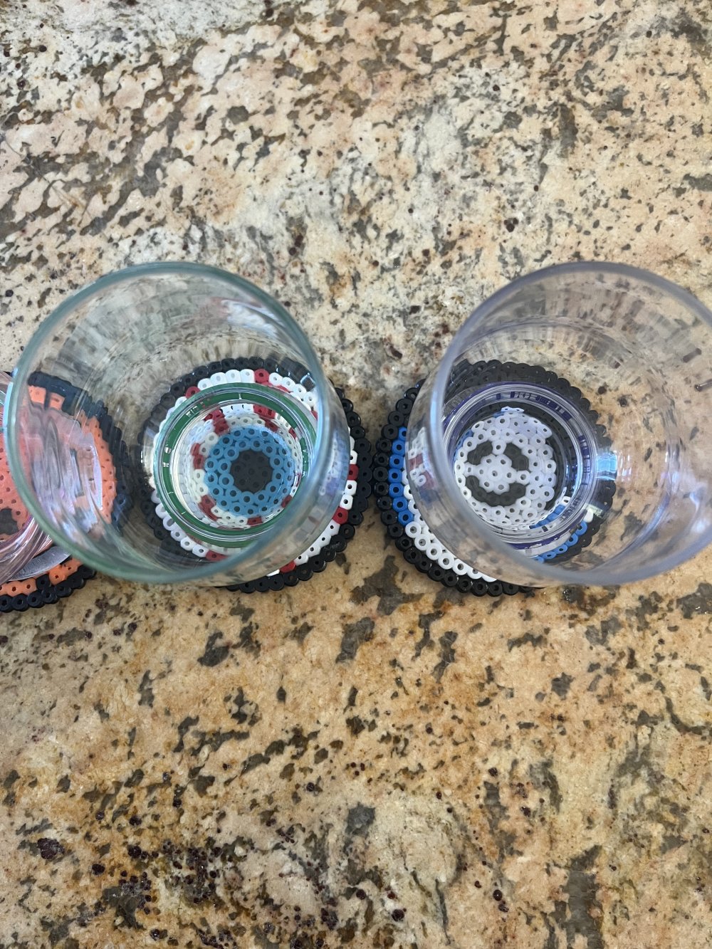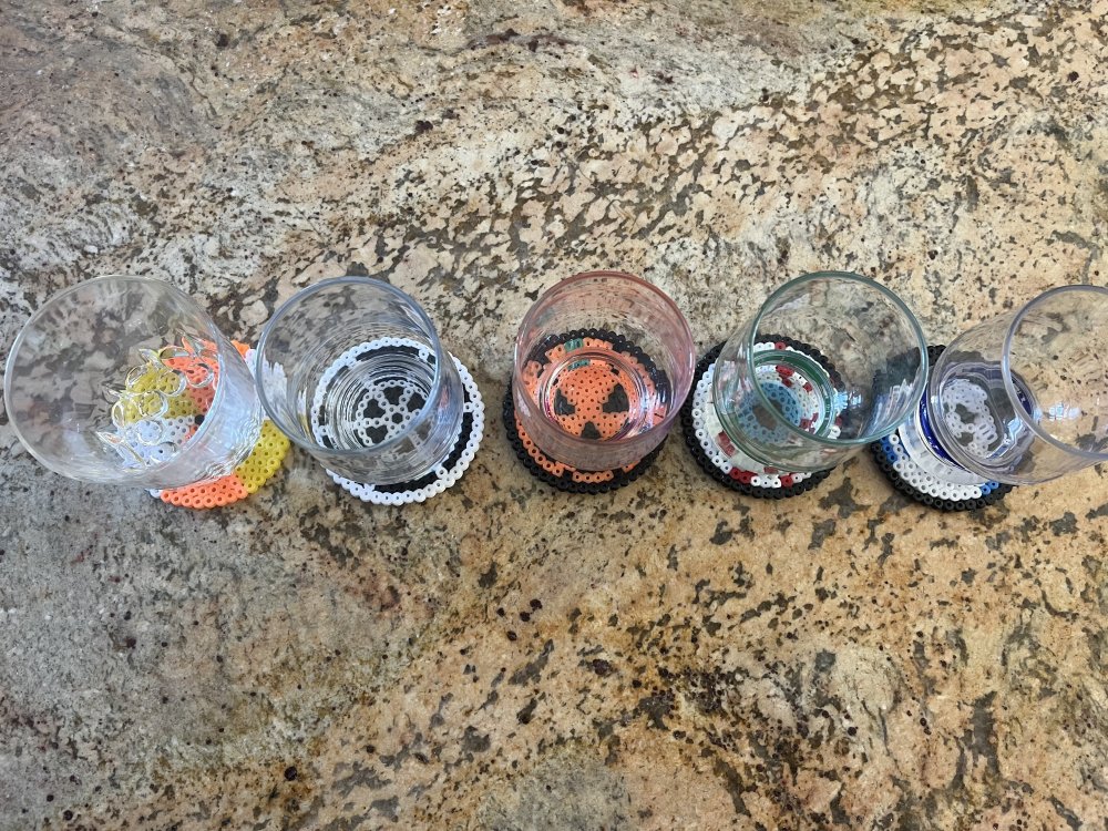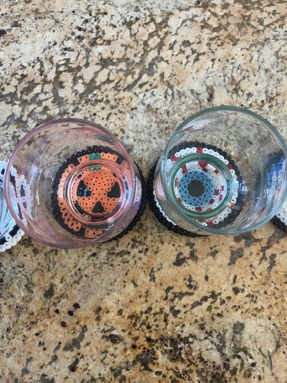 Voici 5 dessous de verre rond effrayants , réalisés avec des perles Hama.