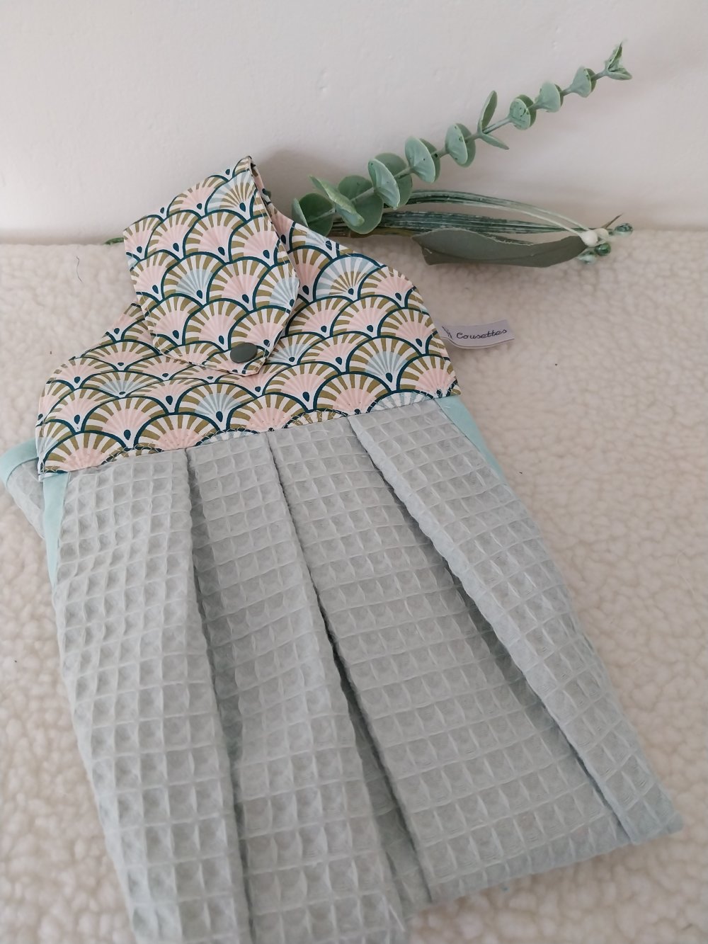 Tissus coton imprimé et nid d'abeille, matière très absorbante.