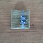Je suis de couleur "Olive Clair", mesure 29 cm environ, je possède une petite étiquette de mon atelier de fabrication pour me suspendre à un support.