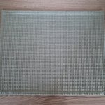 Je suis de couleur "Olive Clair", mesure 42 cm x 52 cm environ, je possède une petite étiquette de mon atelier de fabrication pour me suspendre à un support.