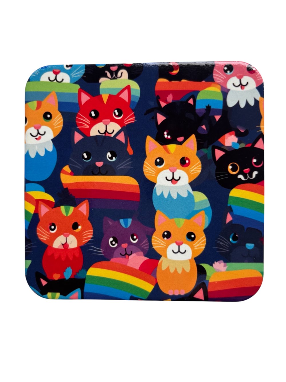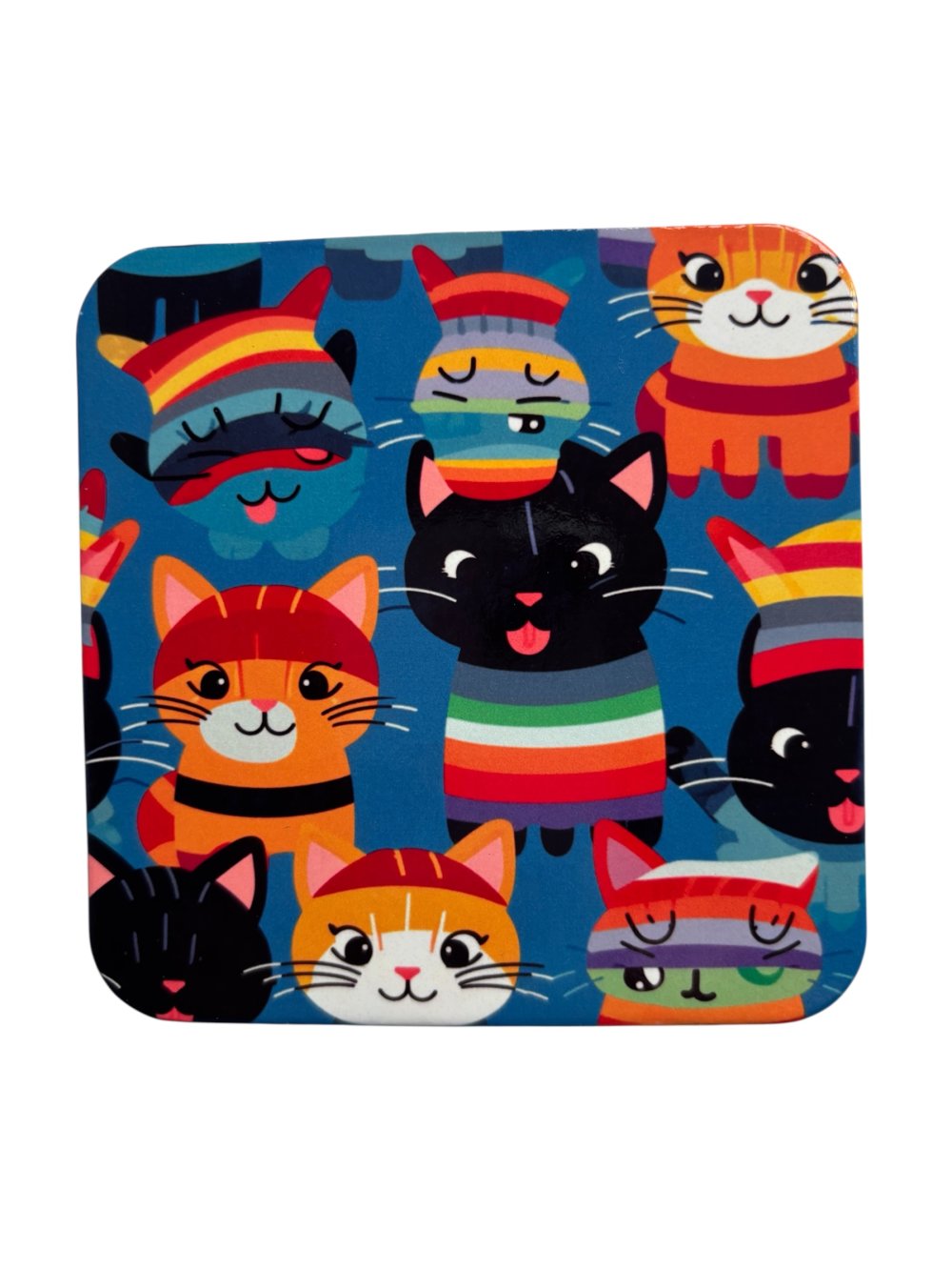 Lot de 6 sous-verres avec dessous en liège sublimés avec des motifs de chats