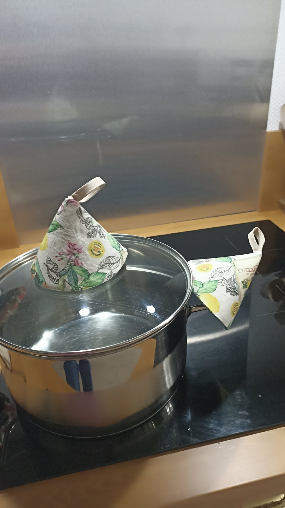 Lot de 2 maniques triangulaire pour poignée de marmite en fonte ou inox